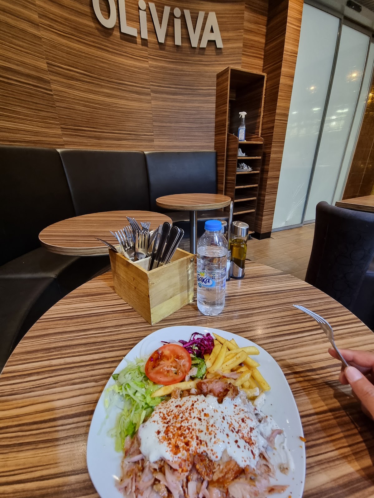 Small food area with only a few sitting places.
