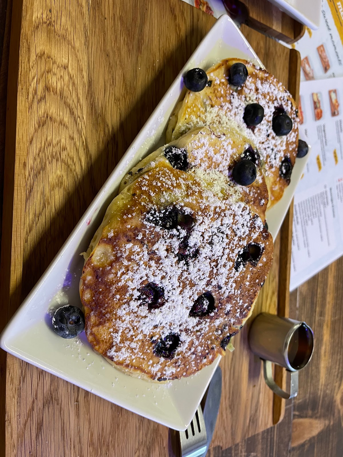 Pancakes were fluffy with a wonderful crust and we enjoyed every bite. Service was great. We would definitely recommend and we can’t wait to come back. The price is also very adequate. We order a freshly squeezed orange juice that was delicious as well.