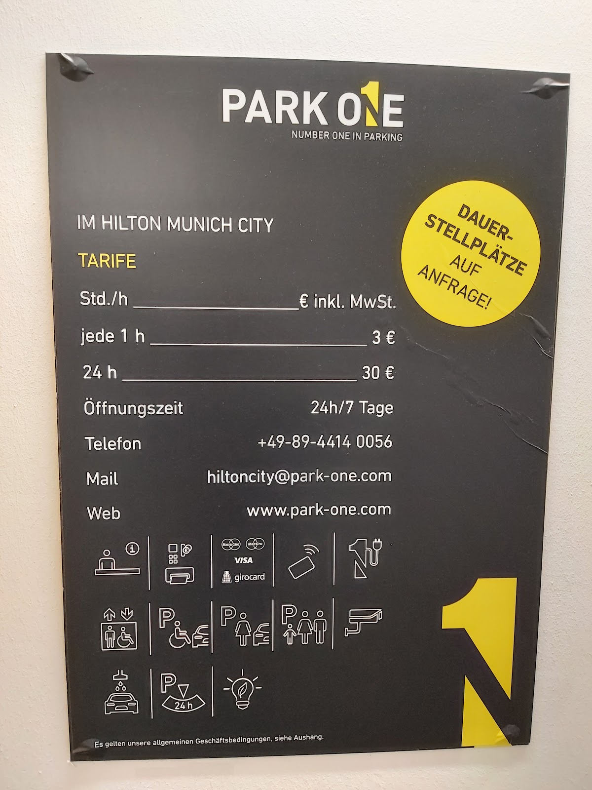 Connection with Hilton and metro station. Close to city center as well. Spaces are with good size, 30 eur per day.