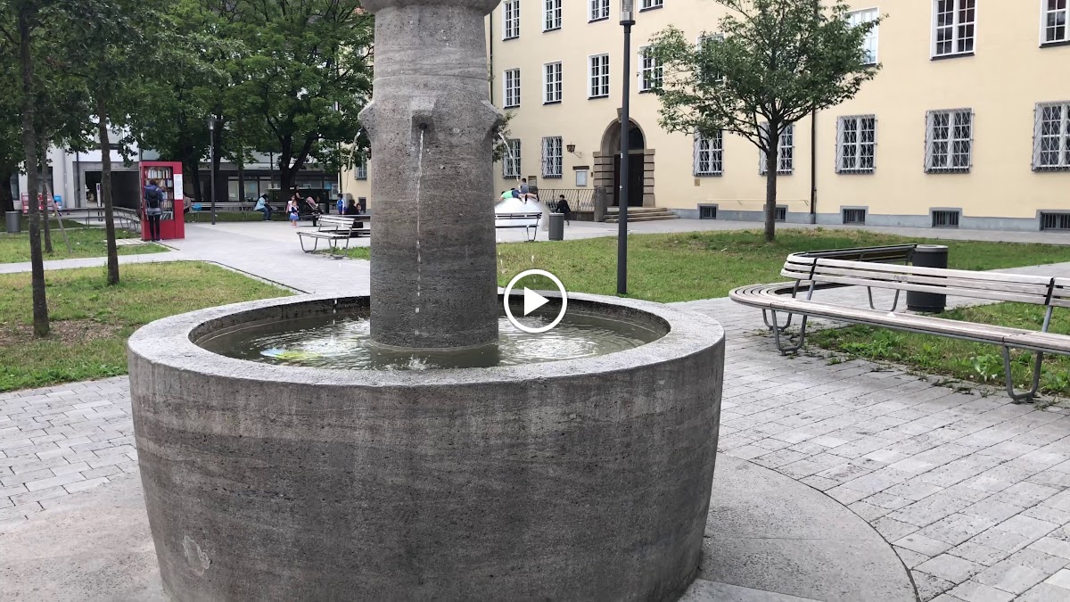 (Translated by Google) There are three trampolines that are very popular among the children. There is also a large hemisphere for climbing, a fountain and a "rotating device". The place is a generations meeting in Pasing. Mothers meet at the trampoline with their children. Older men sit on the benches - almost like in Spain. Through the trees, the place offers a lot of shade.