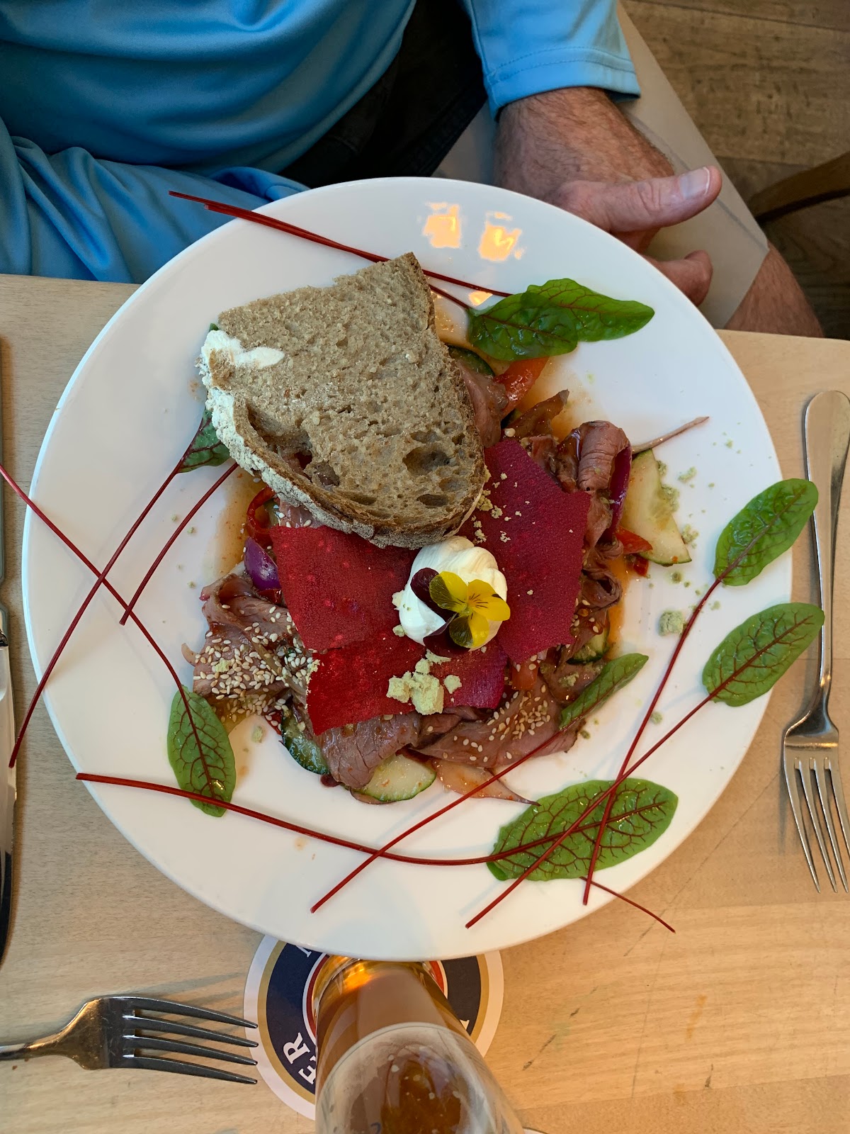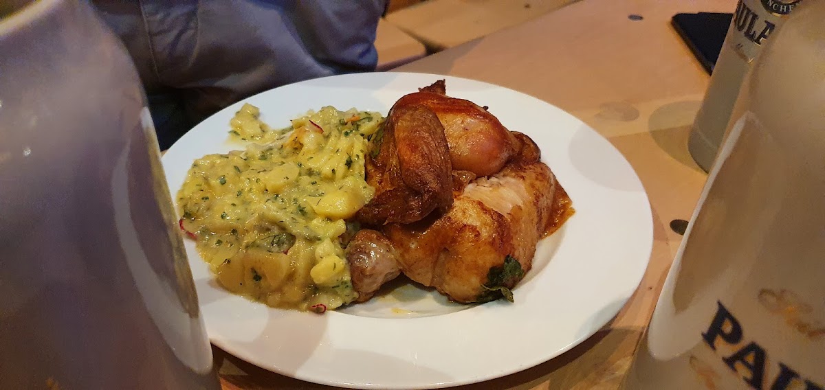 Details: get ready for some German dancing on the table ambience. On weekdays a band comes at 7 pm and makes everyone go nuts. You need to reserve a table way ahead of time and come between 4 and 5 pm to claim it. On weekdays they are not fully booked so walk ins also work. The entrance costs 14.5€ (can be payed by card), 2€ go to the restaurant and 12.5€ buys you the fisrt 1L beer. Yes, it is very expensive and you can only pay cash inside. You only have a choice of dark or light beer. The others are radler or alcohol free beers. The collection of food is not great, but good for a place like this. (I am only talking about the biergarten, not sure if the restaurant has a different menu). They have a burger, ribs, a cllection of wurst, schnitzel and a sampler which i recommend. The sampler has a great variety and can be ordered for one person or for three persons.