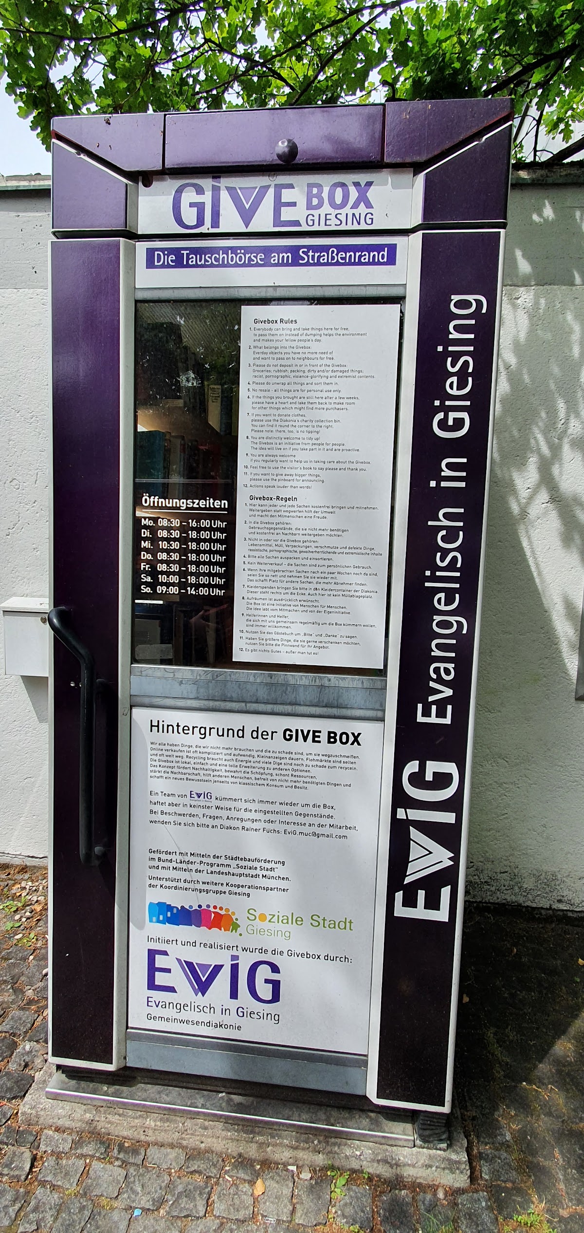 The free-standing, very slender bell tower is 32 m high and houses four bells in the tuning F sharp - G sharp - B - C sharp. They bear the names of the four evangelists Matthew, Mark, Luke, John and Bible verses corresponding to their function: Our Father/prayer times Mt 3:2; Baptism Mark 16:16; Communion/Confession Lk 22:19; Children's service/additional service Joh 1:46.