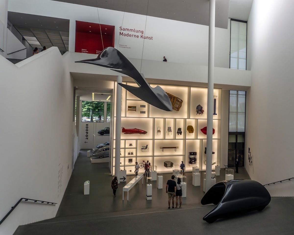 It might be difficult for most of us to understand why we actually spend money to see of the things on exhibit at the Pinakothek der Moderne. Let's put aside the arguments often used against modern art museums and modern art in general. The visit to the modern art gallery of Munich is highly entertaining because the building housing it has a large collection of objects, including many that focus on industrial design. If anything the building itself is a great place to see with sweeping perspectives, remarkably impressive large staircases, soaring ceilings and light coming from different directions, but never in an overwhelming manner. This building is enough to make your visit worthwhile, irrespective of your appreciation, or lack of, of the exhibits on display.