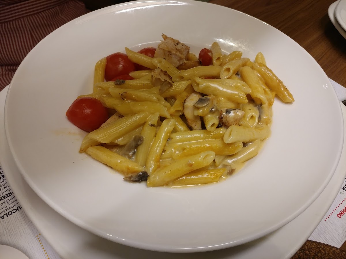 The name is well known for great pizzas and this branch gets an extra star because of it's very friendly service! The food and drinks were as usual delicious. Even with a huge lot, the serving was pretty quick. Has a big indoor seating space. Highly recommended.