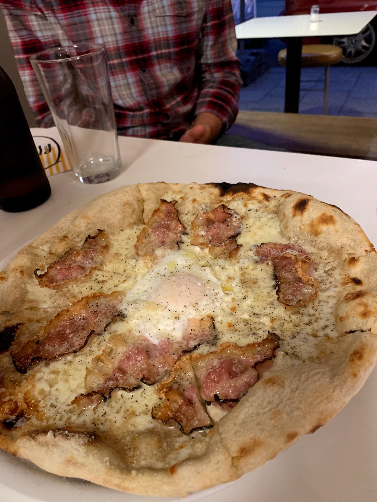 First time i tried was take away and already loved it - yesterday we sit inside and had the pizza fresh out the oven - delicious! Will for sure be back soon. The place itself is also very cool, very nice vibes. Owners are soooo nice and the pizza master is the best! :)