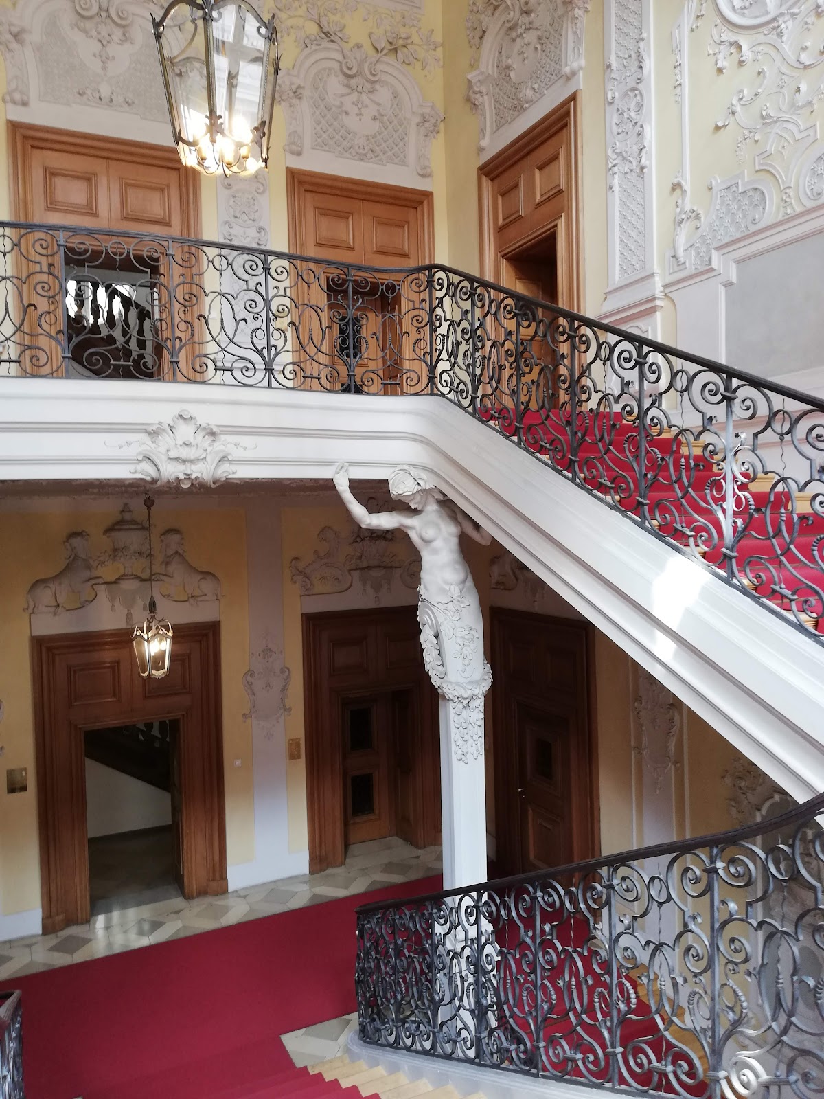 (Translated by Google) Preising Palace is located near the Hofgarten Park. The palace was built at the beginning of the XVIII century in the late Baroque and Rococo styles for Count Maximilian von Preising. Today it houses shops, cafes and restaurants. But the magnificent grand staircase, decorated with portraits of the count, is open to the public.