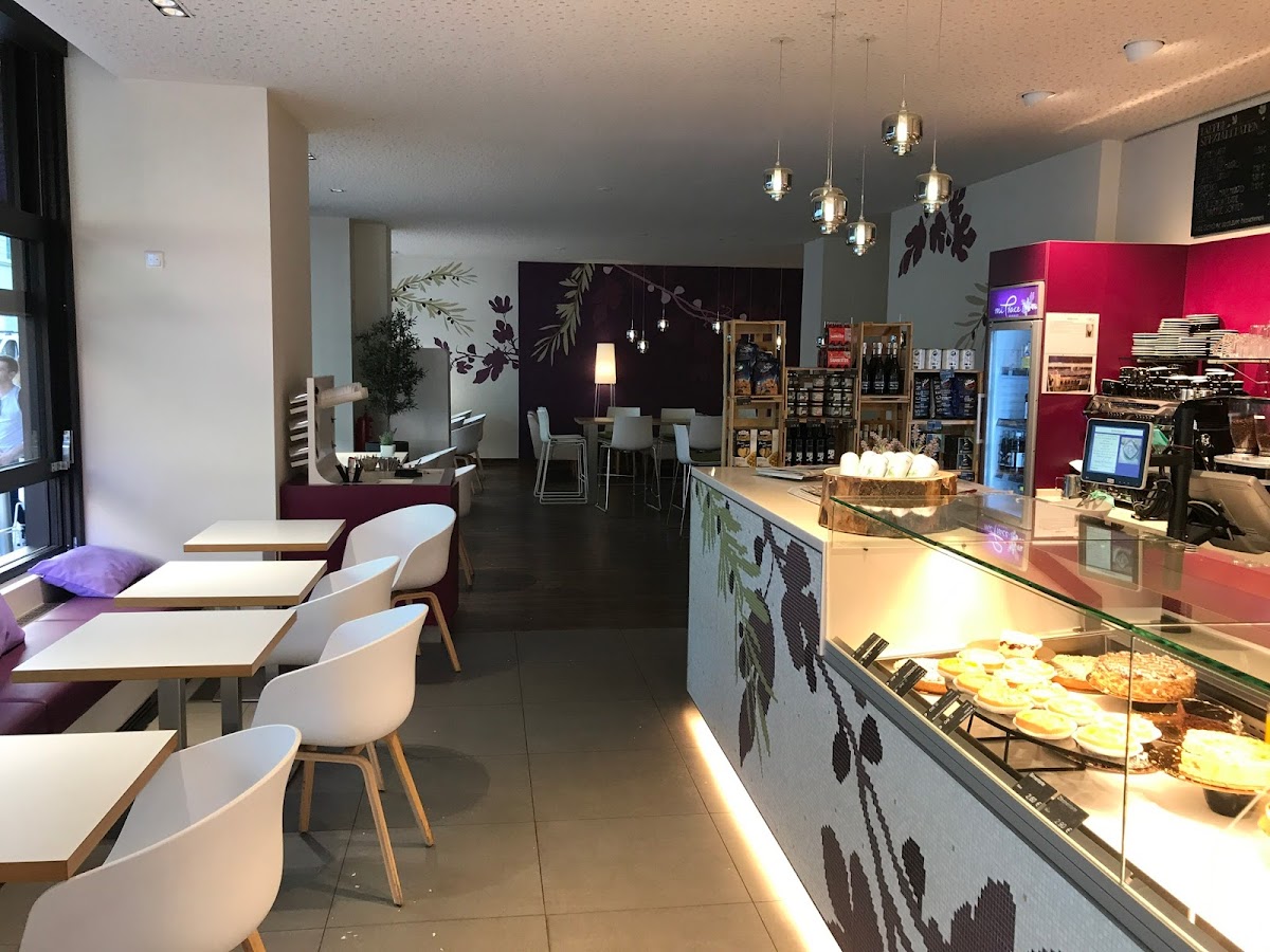 Ramp for easy access with Kinderwagen, clean, large, much seating. Nice food, albeit expensive, but that is Munich in general. Staff are nice, and attentive? Coffee is well made and tastes nice, no issues at all. Took away rubbish trays regularly. Would recommend and I would return again.