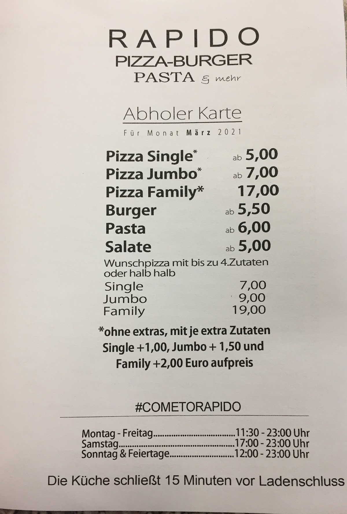 Nice tasty Pizzas to fair Prices. If you catch it by yourself it s 4.90 single, and 6.90 Jumbo