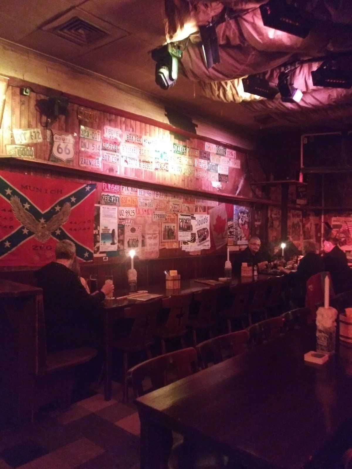 Great western atmosphere, feels like an American bar. Great live bands, biiiiig burgers and full of funny guests, will definitely go again! Parking is a little difficult so try to come by public transport.