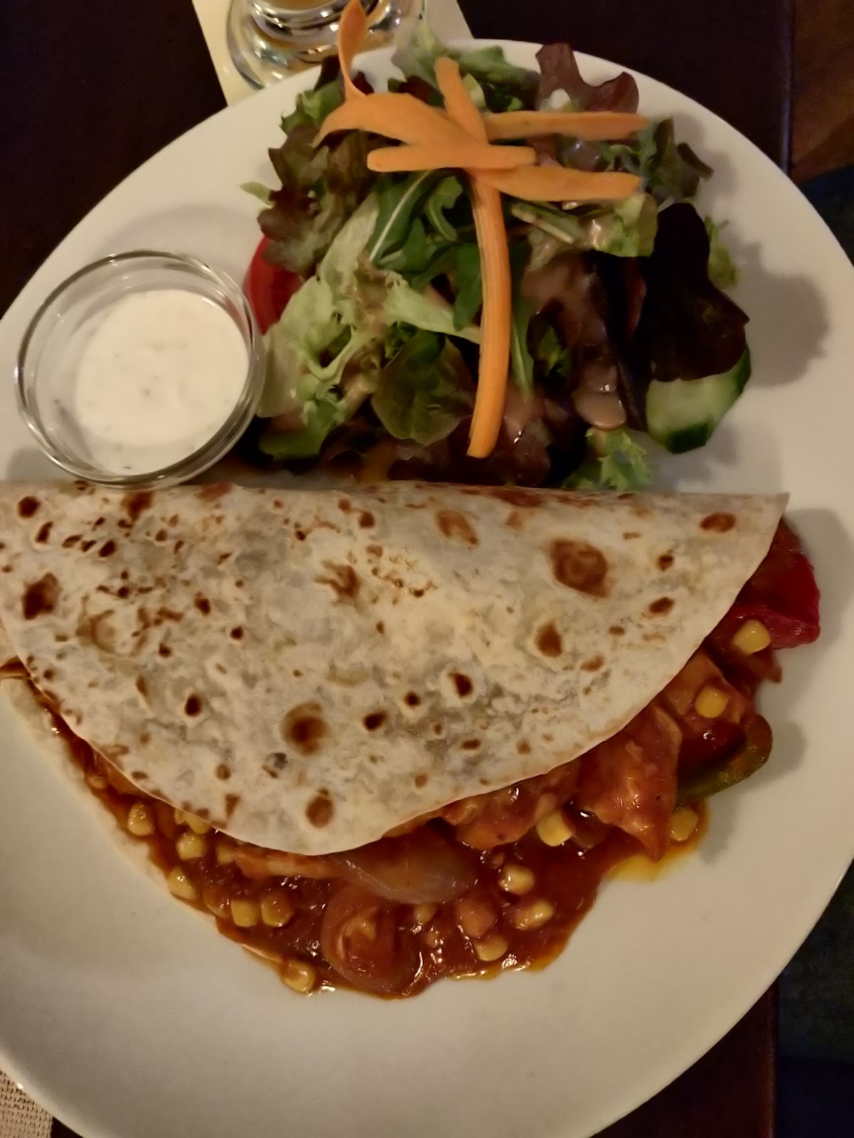 We stayed in München at a hotel and search for a late night dinner. The kitchen is open till about 23.00 and then it closes. The restaurant is open till about 00.00 so you can get a nice drink after you ate something. It looks good and taste nice. The Tex mex plate is big but if you're really hungry I would not choose it or get some fries with it cause it's not that big to be fair. But friendly staff and lots of thing to choose from.