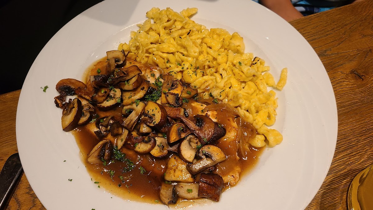 The turkey breast with mushroom and onion sauce and spaezel is the best meal I've had in Munich