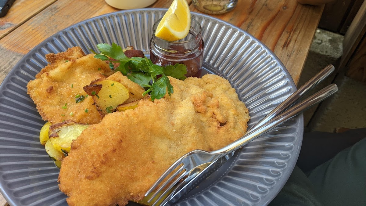 The Knödeltris is Classic! Strongly recommended, tasty! I feel that even better than what I experienced in Südtirol. The Schnitzels were served in two large pieces that were also well done, I couldn’t finished. Service in general is adequate, atmosphere is somehow steaming because fully occupied. Good business!