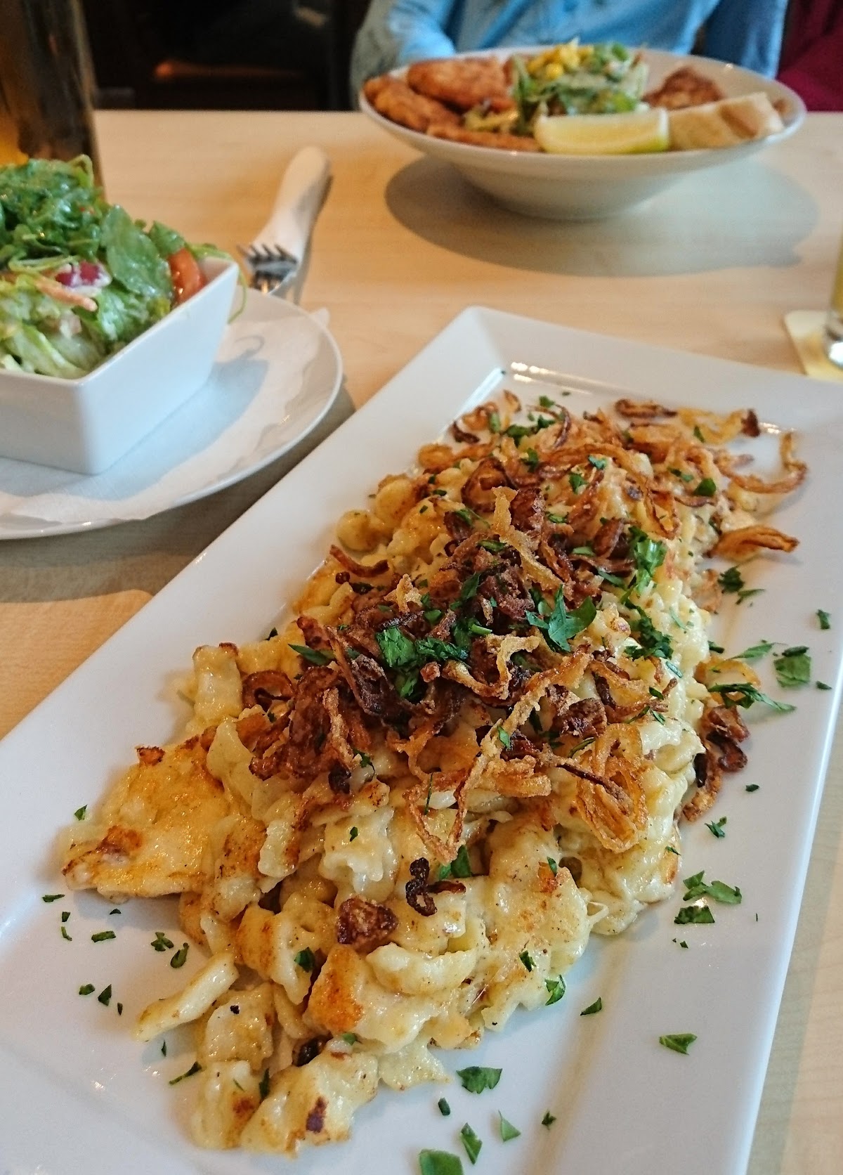 Hier gibt's ordentliches Essen u0026 große Portionen: So kommt der Salatteller mit Putenstücken eher als ausgewachsenes Putenschnitzel denn alles leichtes Hauptgericht daher. Die Käsespätzle schmecken mir gut - auch wenn ich sie eigentlich cremiger mag. Der Service ist 1a, die Preise angemessen. Ich komme gerne wieder, keine Frage!????