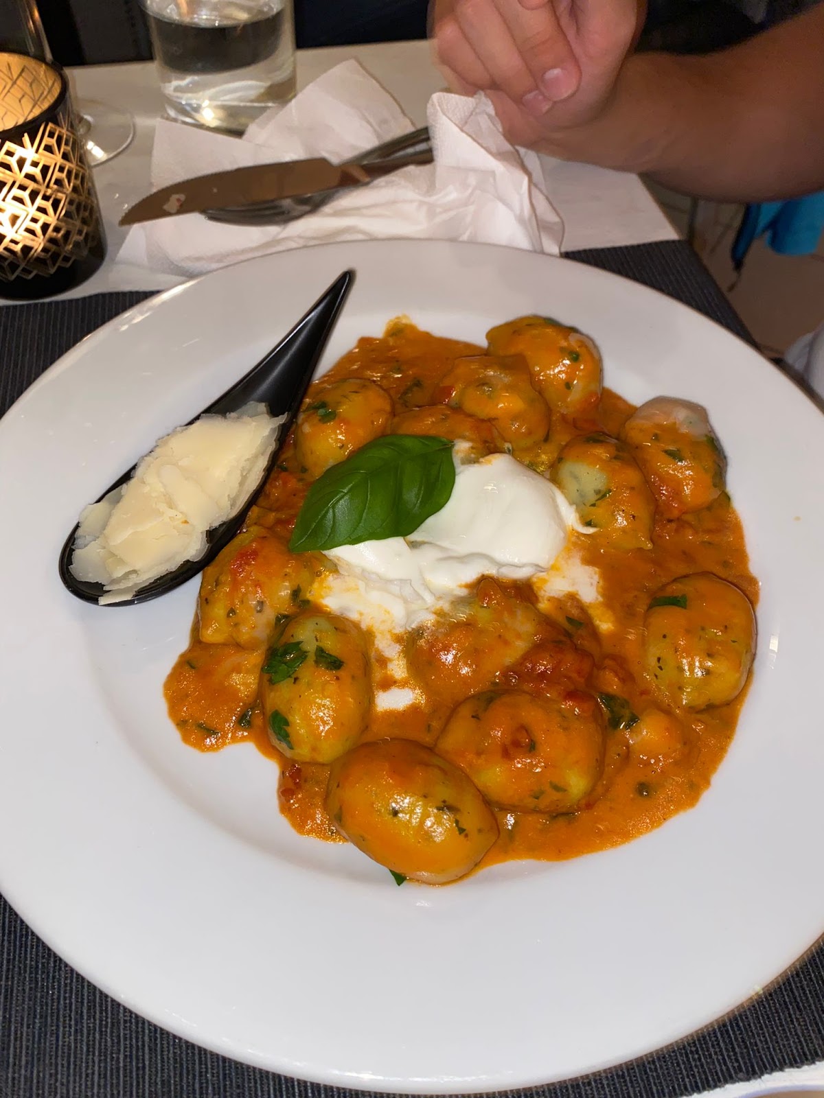 Cool design on the inside, and the service is quick, friendly, nice and professional. The foods are well prepared from quality ingredients and made with love and passion. They have vegan and gluten-free options, and that is impressive from a restaurant with a traditional Italian kitchen. Give it a try, booking in advance is a good idea, it is worth every cent.