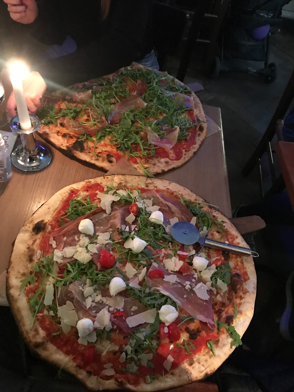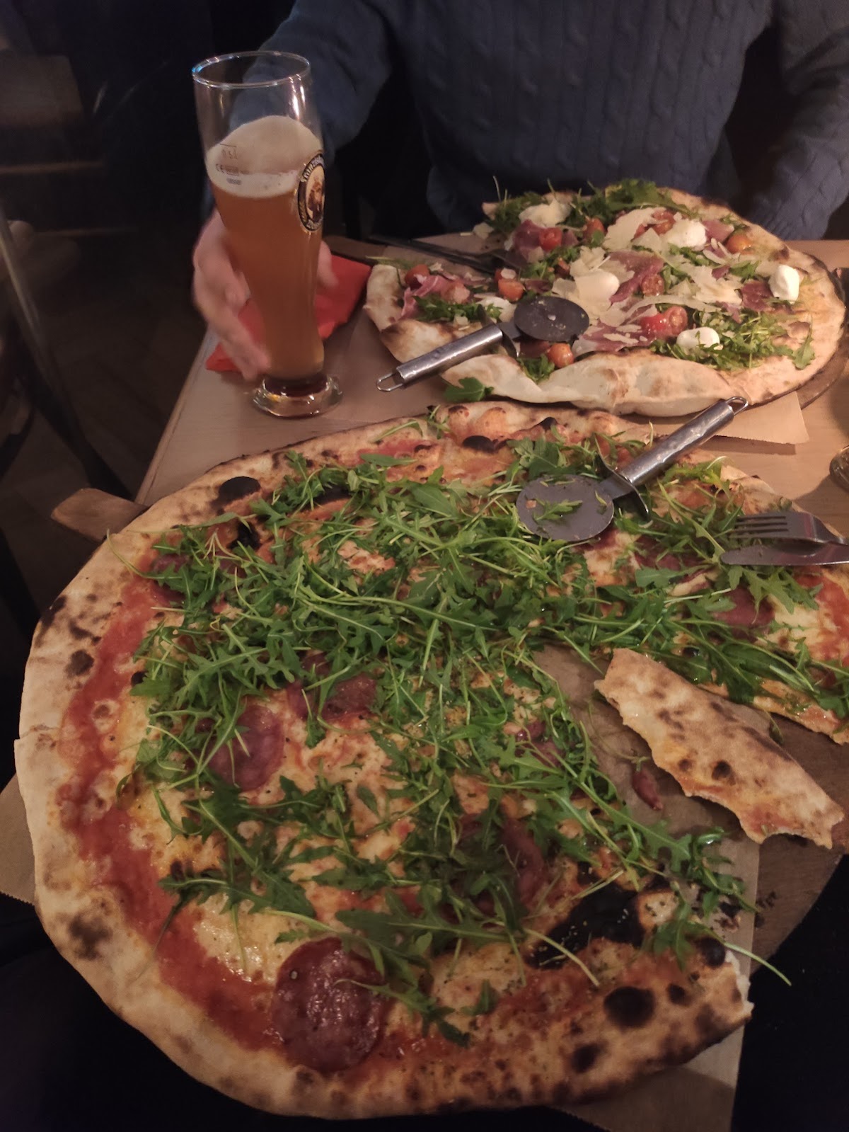 Overall experience was positive. The place is very cosy, every table had a candle, we had some olives and bread as an appetizer which was for free. The only disadvantage was the size of the pizza. The menu is not including info about the size, so when the waitress said that pizza will be not very big, we have ordered two. At the end, I can say one pizza is enough for a couple. The dough is thin and fresh, all the ingredients are good quality and are tasty, for sure it is worth the price. Unfortunately we were not able to try any dessert, due to the amount of pizza we ate. The option to take leftovers home is available. I would come back for desert and good beer ????