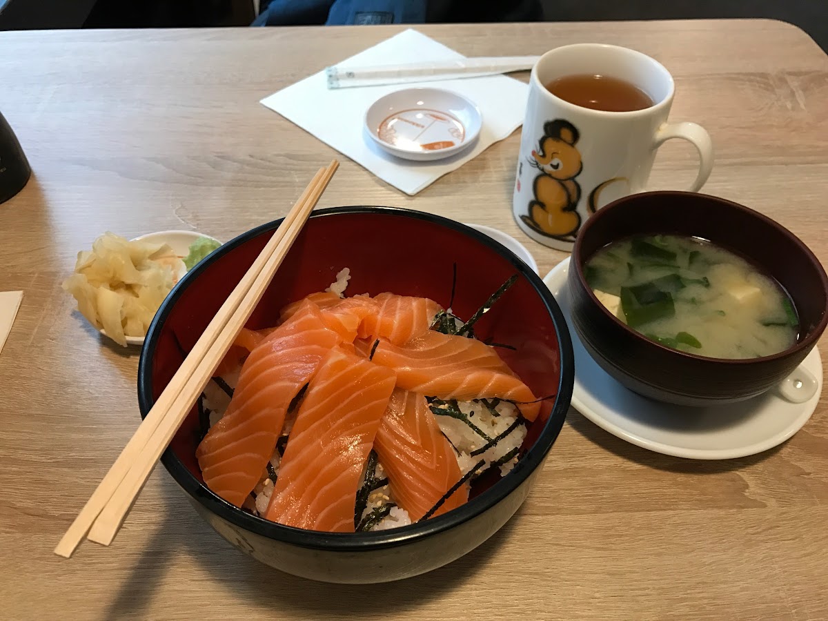 The Sake Ton is perfect, especially with a miso soup. Unfortunately that day the dessert was out of list.