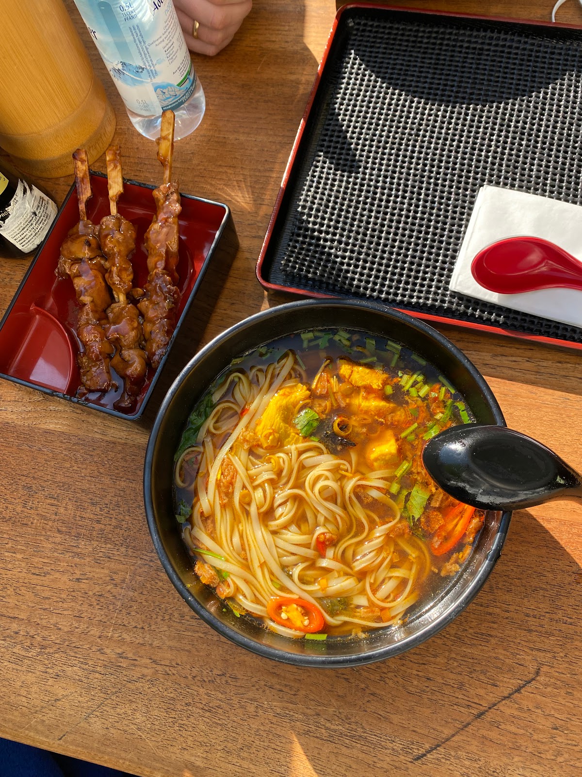 We were a couple of tourists visiting Marienplatz, Munich and decided to eat at Sasou for lunch prior to our flight home. As we were close to finishing up our meal, I was appalled at what I saw at the counter. The Asian guy who was manning the cash register and serving the food to customers was 1) not wearing a mask and 2) eating something while on shift and spitting out what I presume to be a pit from a prune/olive into his bare hand. I observed that he, without washing his hand, went on to place spoons and bowls of prepared food onto the tray for the next customer.
