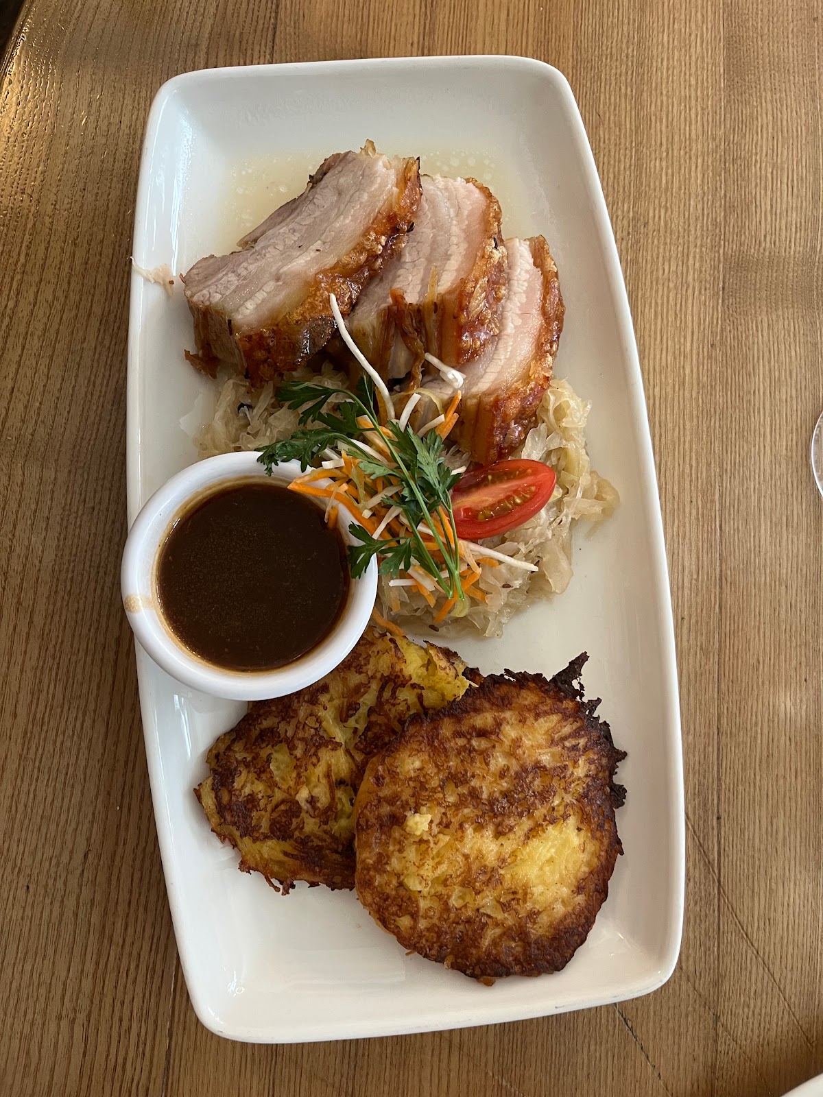 Very happy with a place. The food was delicious, we had a duck and sausages with cabbage. As always very pleasing beer selection and quite warm ambience. Money wise the food is worth the price. Special thanks to the welcoming and positive waitress who speaks English. If you want to go to the typical German tavern with waiters wearing national dresses and eat German sausages this is the place!