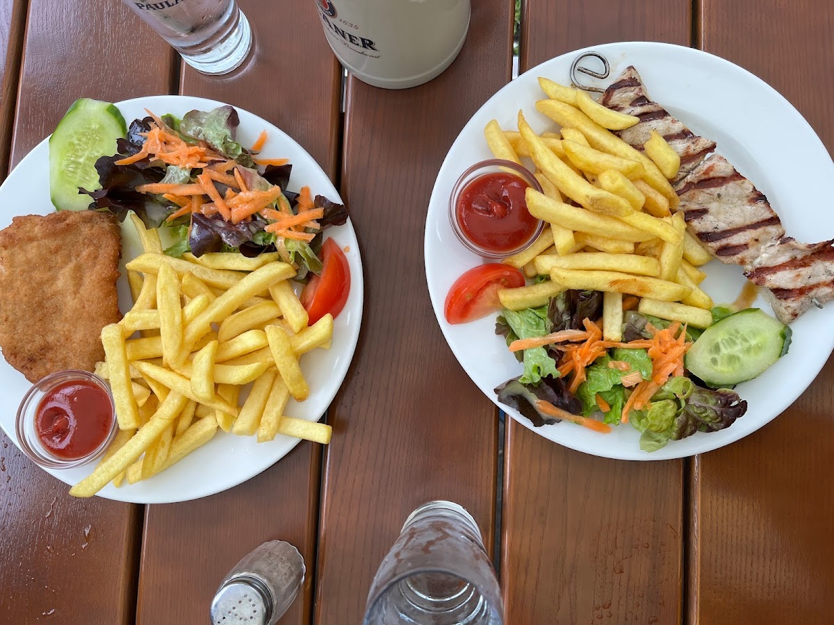 Stumbled upon this delightful little Beer Garden near Feldmoching Lake after a swim in the Lake. We were hungry and thirsty and this Greek-inspired oasis didn't disappoint. Feldmochinger See offers a basic menu of fresh salads, schnitzel and Greek platters. Accompanied with beer or Schorle, a German beverage made by diluting juice with carbonated water, and simple deserts. Yum!