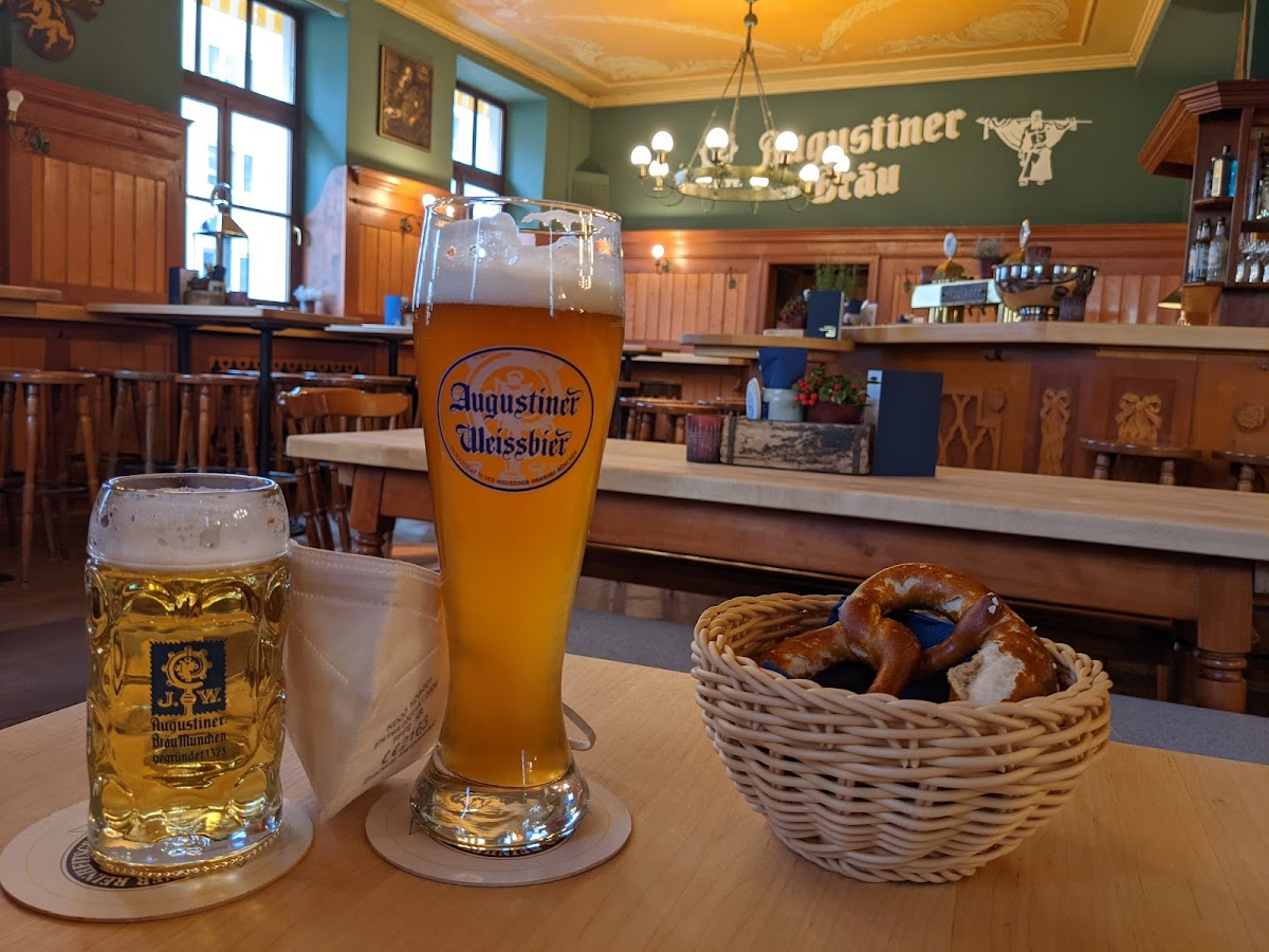We visited here Thursday 8th October 2020. It's a smaller than some of the big beer halls in town, however it's still a reasonable sized place that occupies a corner plot where Daiserstrasse and Alramstrasse meet. If you were in the centre *btw let's consider the centre as Marianplatz, then it's about 50 minutes by foot or 23 minutes and 4 stops on the U3/U6 get off at Implerstrasse and it's a 400-500metre walk from there. It's an Augustiner place so the beer is decent in particular I would recommend the Edelstoff. It's a nice looking building from the outside, it was dark when we visited but it looked a peachy colour with Augustiner livery.