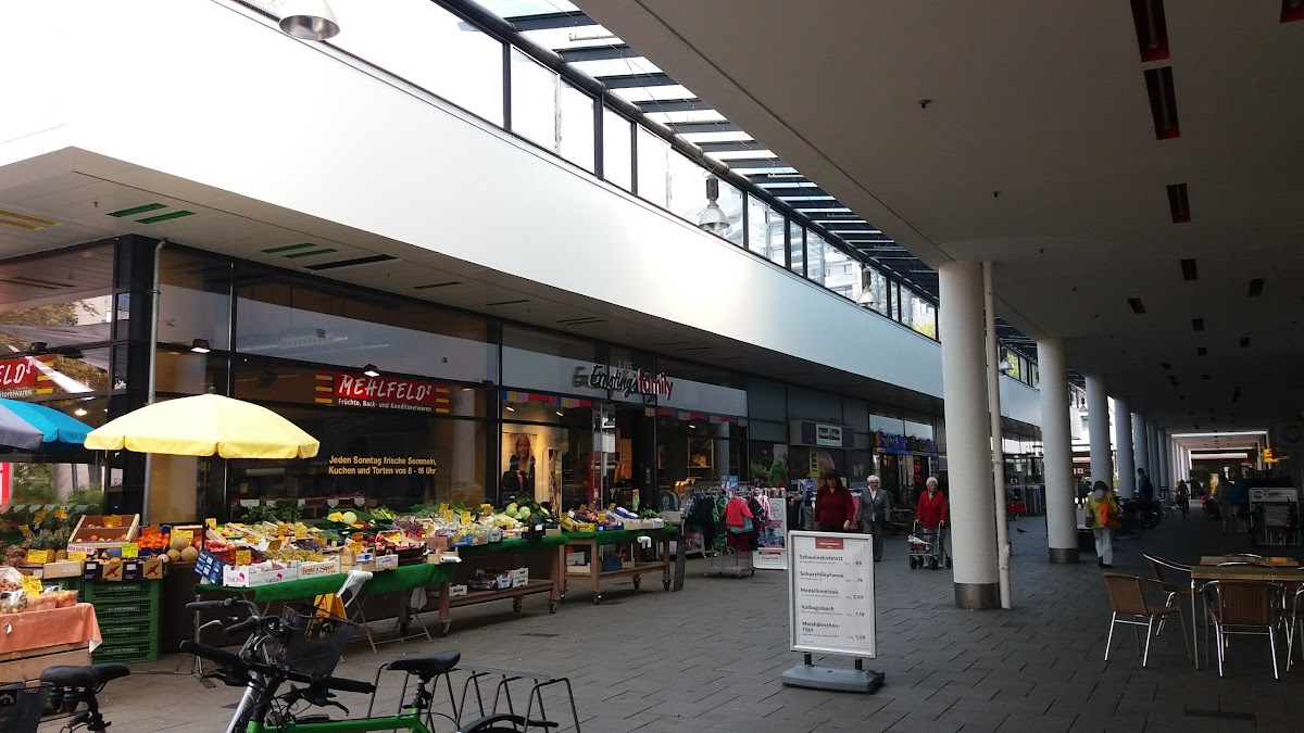 Big shopping center with Edeka, Penny, DHL, Salon, restaurants, Turkish shop, cafe, massage parlour, bookshop, sports bar, Apotheke, dry cleaning and what not..