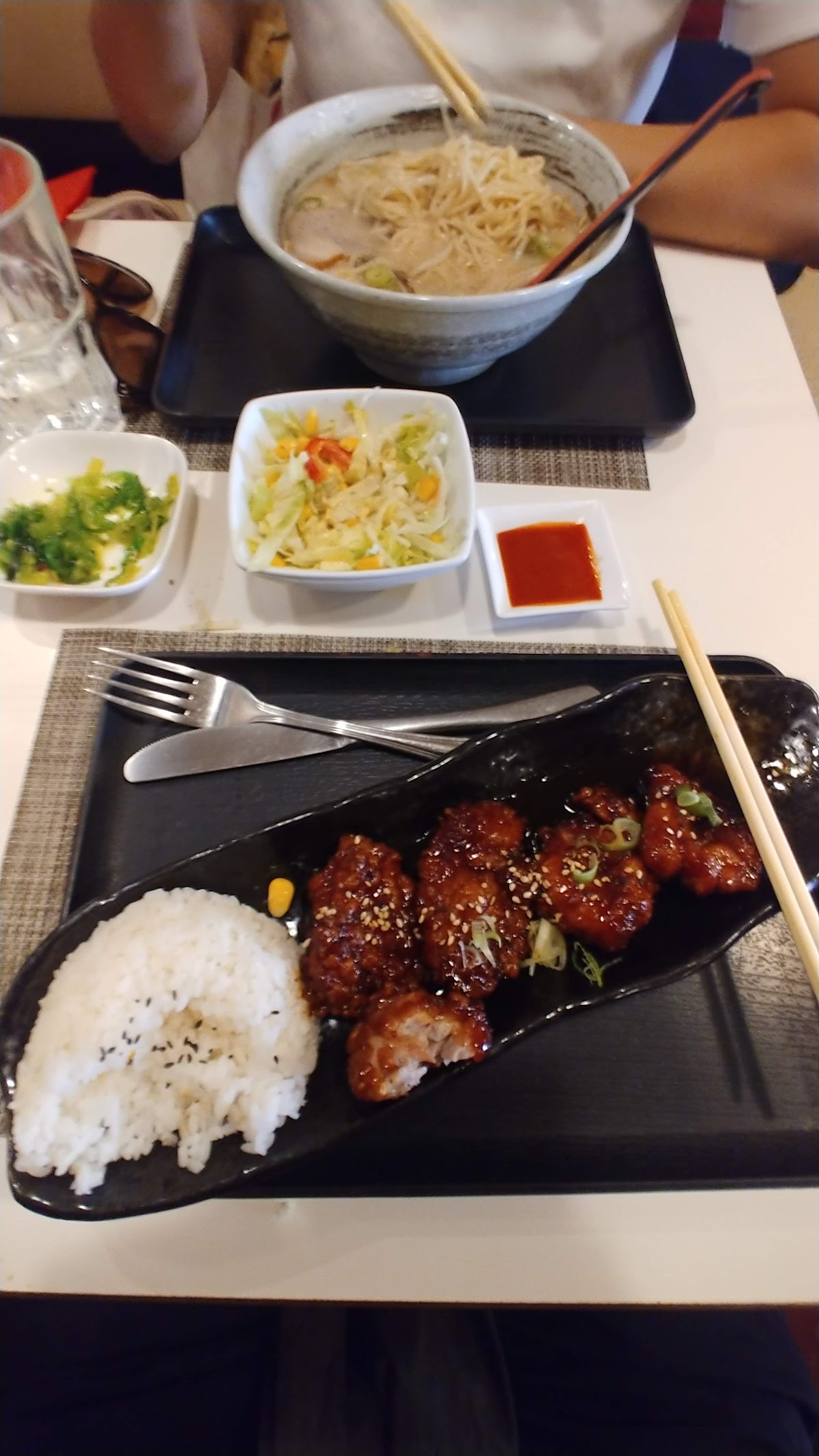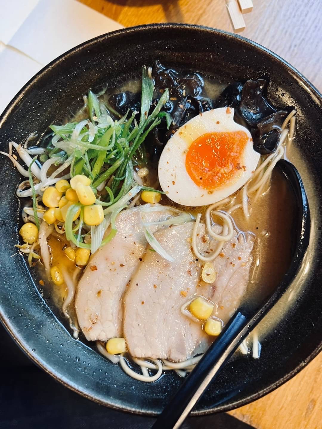 I enjoyed the genuine food and service by Japanese chief and waiter! The tonkotsu (pork) ramen broth was thick and the noodle was a bit hard which was perfect combination! Karaage (fried chicken) was very juicy and nicek flavored. Total price was €20 which is definitely worth and I will definitely come back!