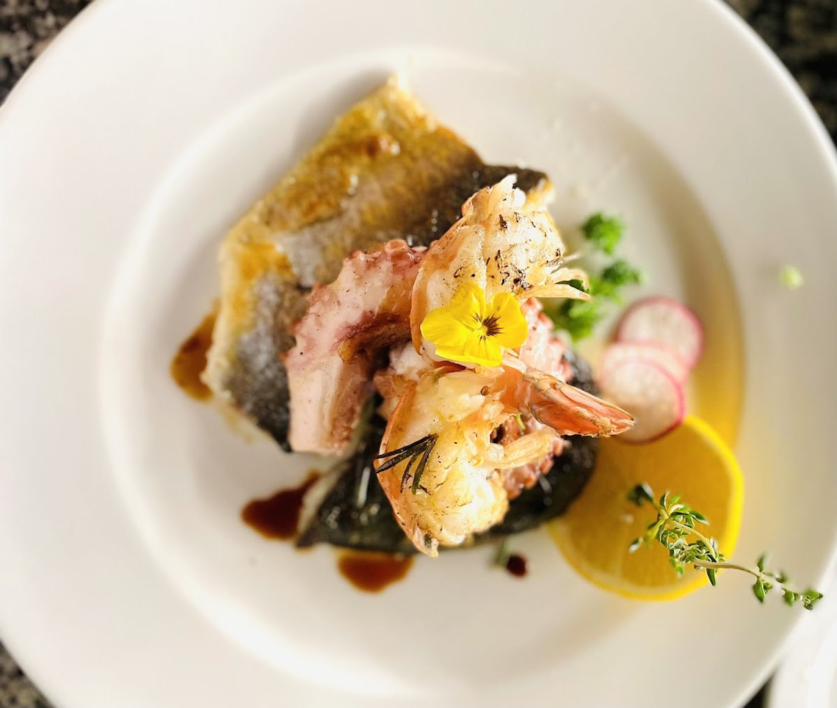 The food was very, very good. Atmosphere not as nice with music randomly changing volume to very high. The waiter was rude, making jokes about how we probably want more food based on how we look. Seemed much nicer to the single ladies at next table!