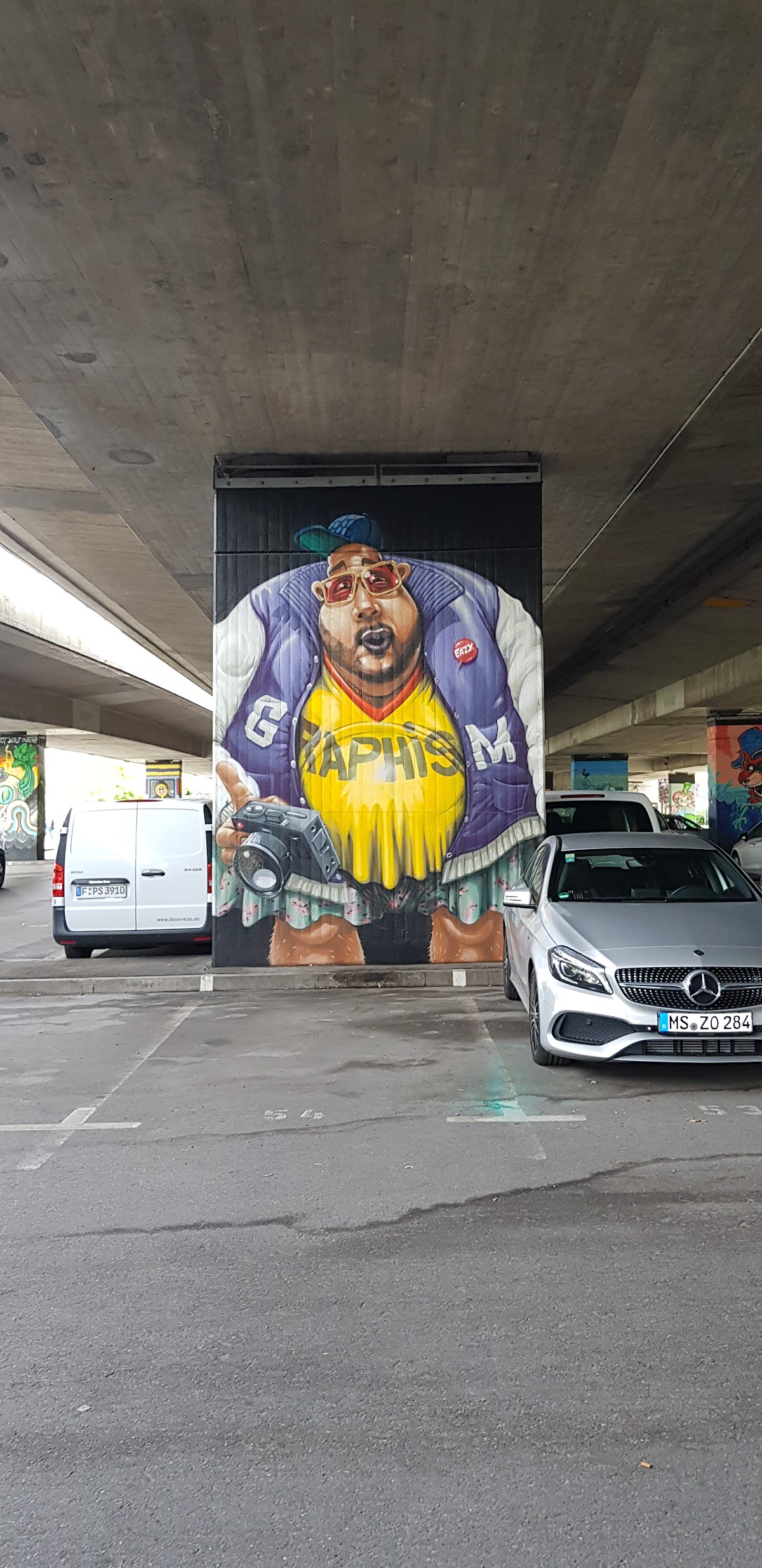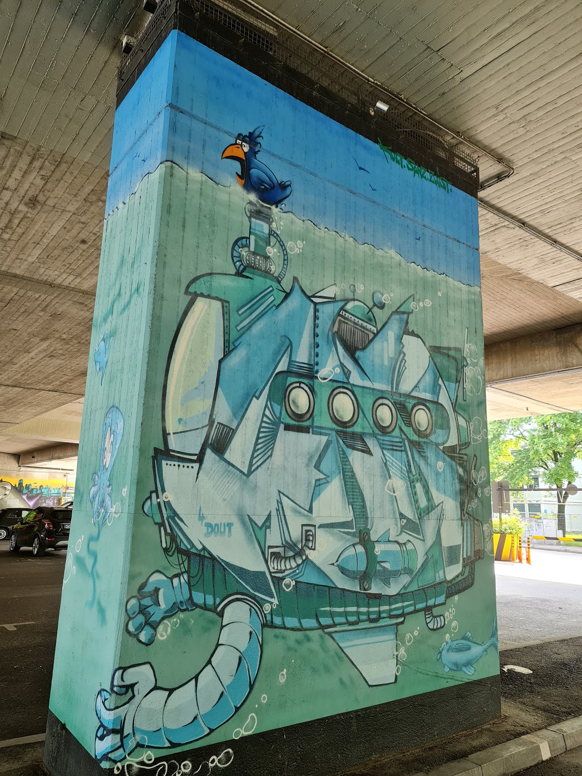 Art street sur un parking public. Il y en a sur tous les murs, le détour en vaut la peine.