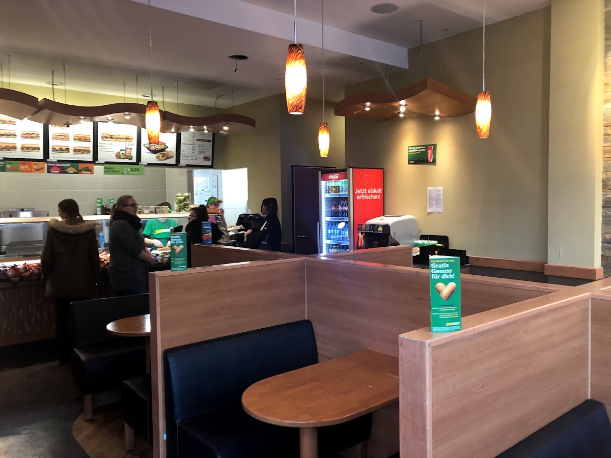 Good old Subway. Near train/tram/bus station. There is usually someone on staff who speaks some English. It can be a little slow if there is a line.