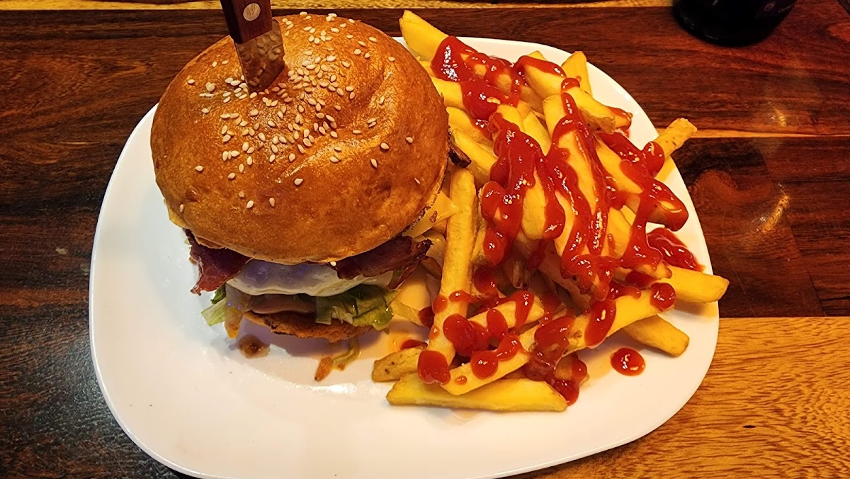 The burger was delicious and filling. The patty was home made and had a unique taste. The burger was definitely bigger than expected. I would recommend the burgers. They also have a wide range of burgers with different fillings and sauces.