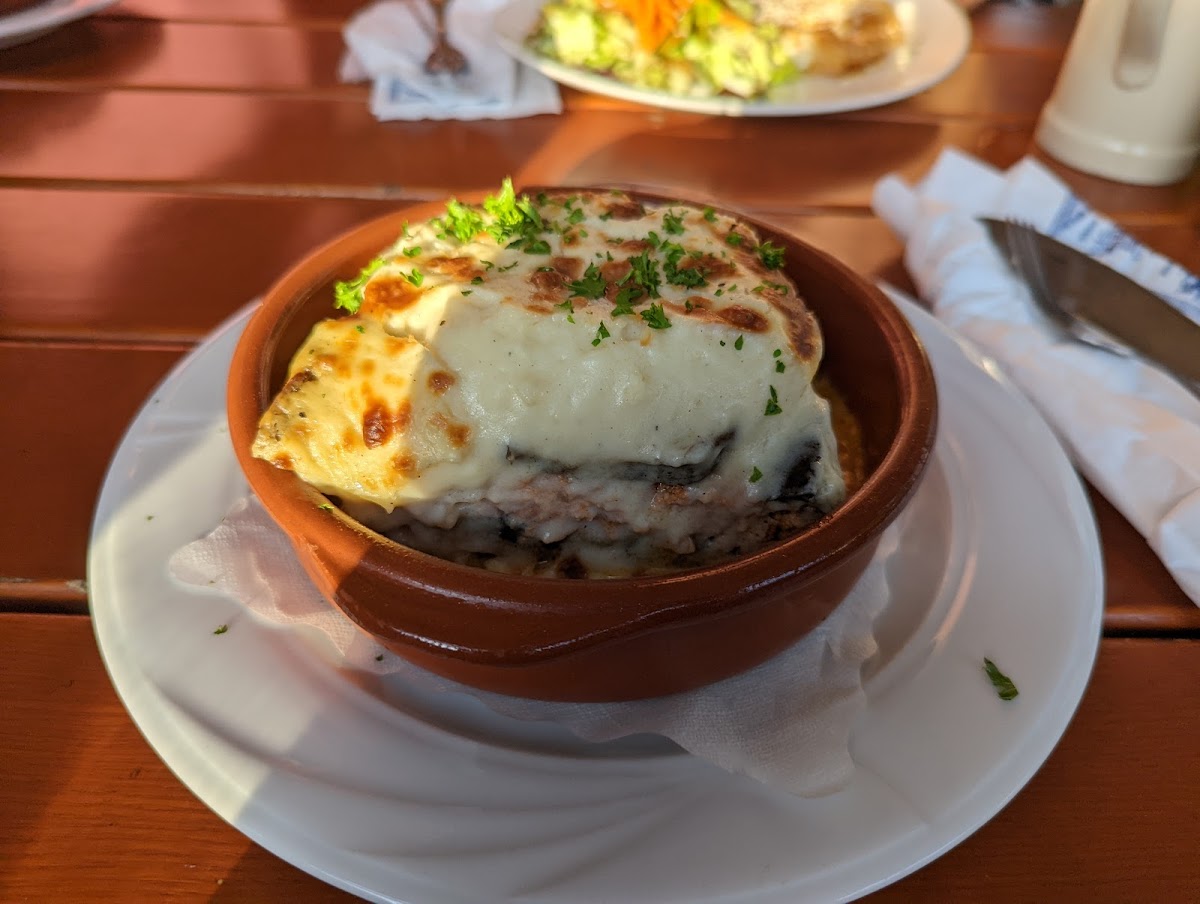 Staying with friends who live near the Olympic Park. We decided to go to the taverna and have dinner. The taverna was nice but the food was okay. I had the moussaka and my friend had the calamari meal. My moussaka was good but it was rather heavy which is understandable and I couldn't finish it so I shared it with him. He gave me a couple of pieces of his calamari and it was rather rubbery and tasteless. Overall it was a nice visit hanging out with my friend and his family. We made reservations before going as we went during dinner time and it was rather busy.