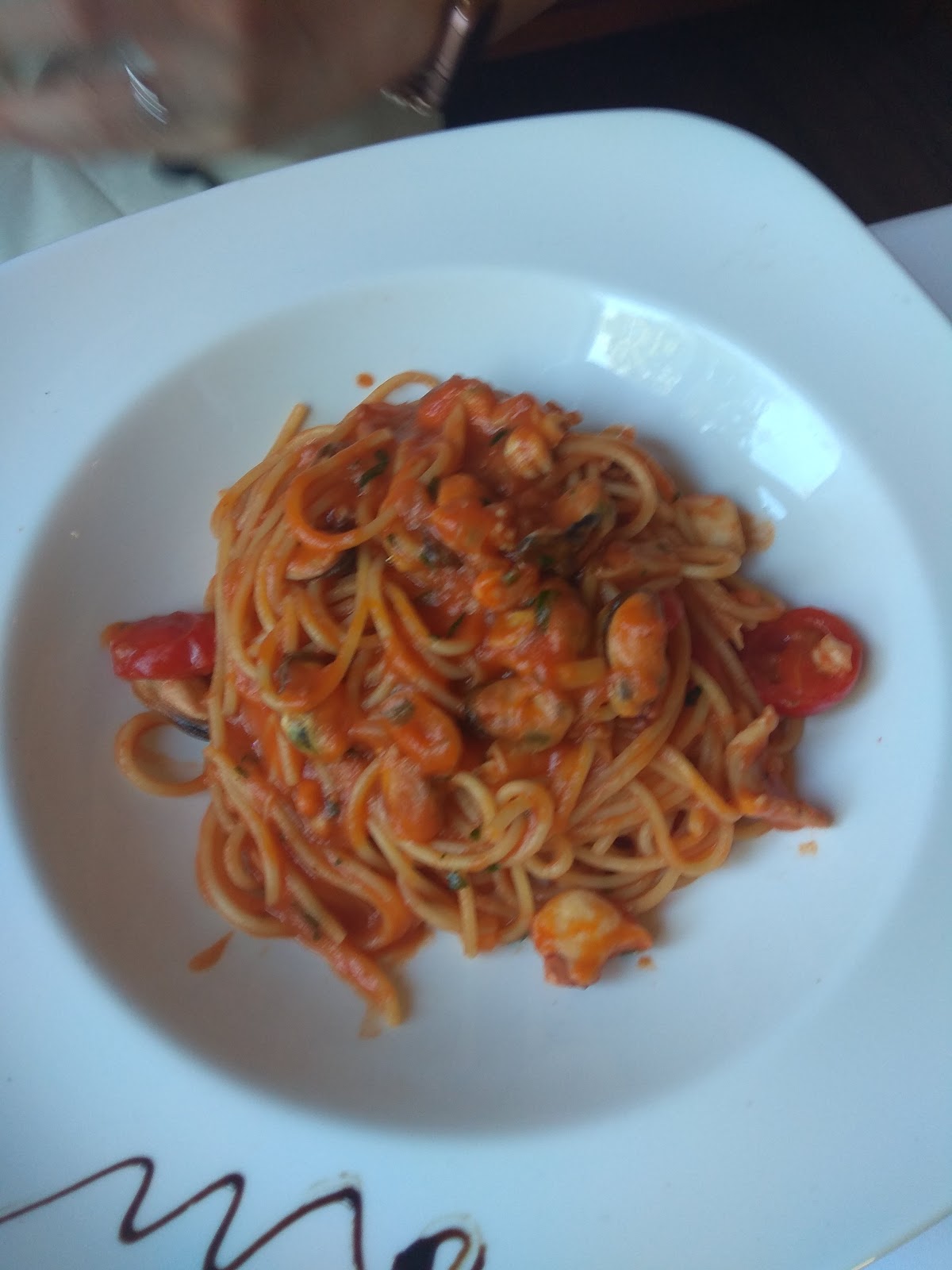 in fewer words, pasta is not so good. my wife asked for sea food spaghetti and I asked for specifically what is the most exceptional pasta dish in their menu, the polite waiter strongly suggested a truffle pasta, but it was cooked a tad bit too much and was very oily, not enough cheese either it was very very underwhelming for almost 13euros. pizza special (everything except fish) was the highlight of the day, really amazing. if you come here I would recommend only order pizza. they saw I couldn't finish the oily pasta they didn't even ask id anything was wrong...