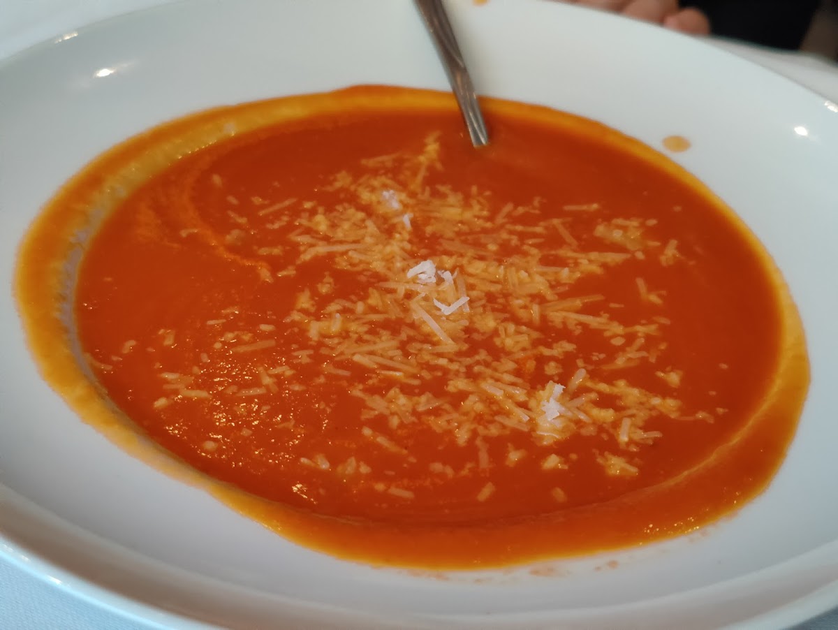 The Salmon was great with a perfect sauce, the pizza was a true Italian pizza and the tomato soap was to die for.