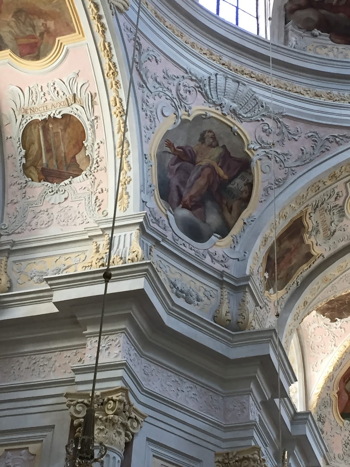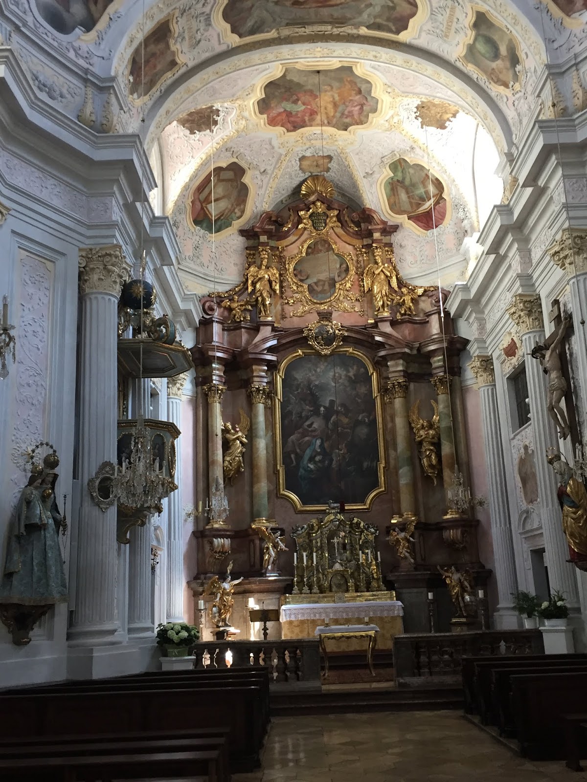 The church facade is attractive and the interior is fine for viewing as well. Unfortunately, there is a gate which separates the entrance from the main nave, meaning we were only able to view from the back. The alter and pulpit are ornate and there is an impressive inner dome fresco by Cosmas Damian Asam that you can still see from the back of the church.
