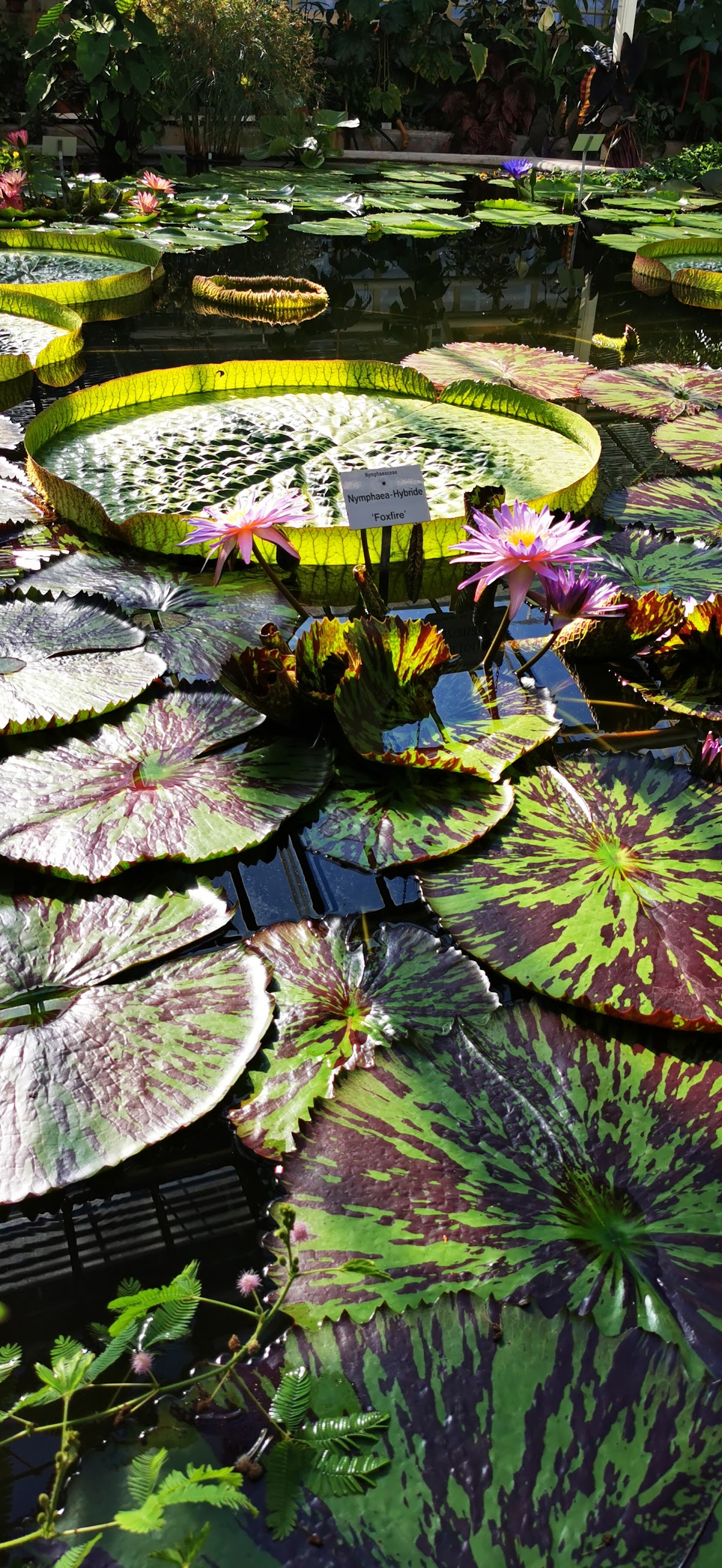 Pro: In den Gewächshäusen wird ein Großteil der Botanik der Sub-/Tropen dargestellt. So auch die wunderbare Victoria-Seerose und andere Seerosen sowie Lotusblumen im Victoria-Haus. Super schön blühen die verschiedenen wilden Orchideen und die Seerosen. Beeindruckend sind die Kakteen, Agaven sowie Wolfsmilchgewächse in den benachbarten Glashäusern.