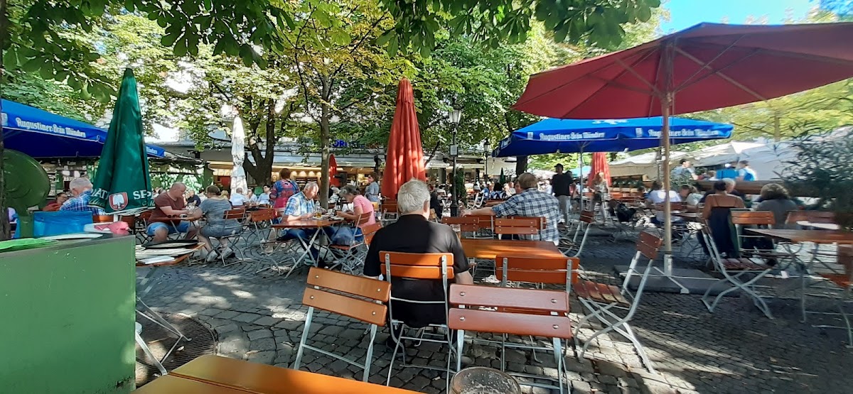 Generally, a very positive experience. It was my first beer garden in Germany so I don’t know how it measures up to all the rest. Large outdoor area with lots of picnics tables to choose from. I had a beer refreshing beer but they also had food and cocktails. There’s some shade from tree coverage and umbrellas but can get pretty toasty if you don’t find yourself in one of the shaded areas. Great market nearby.
