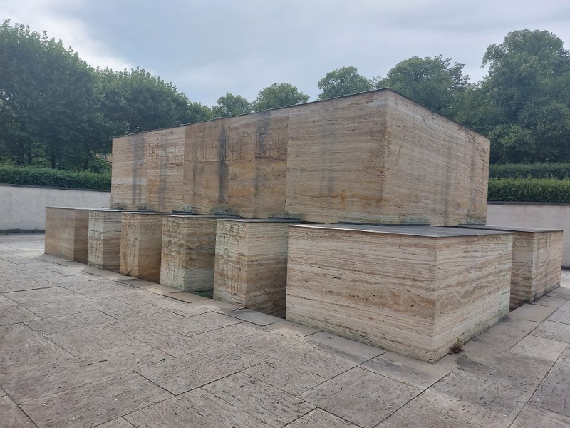 a stone memorial dedicating to the fallen soldiers from Bavaria in WWI you get to it from Hofgarten and you take stairs and enter what would be a tomb of a lying soldier holding his weapon. very impressive and in front of the Bavarian counselor building.