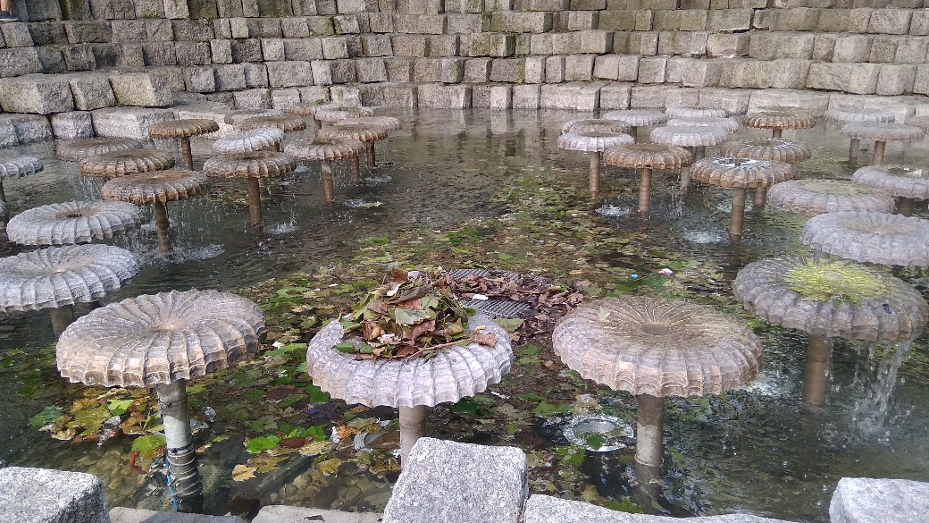 very pleasant place to bring your children where they can play on the mushrooms and feel the cool water.