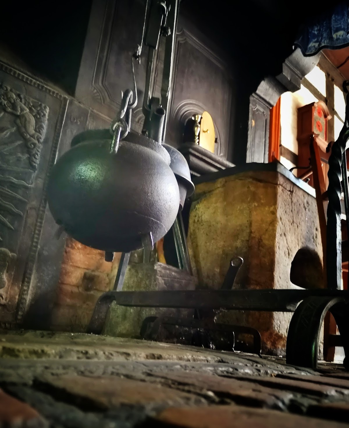 Two families used to live in the two halves of the house. Now the room is used for the restaurant and museum shop.