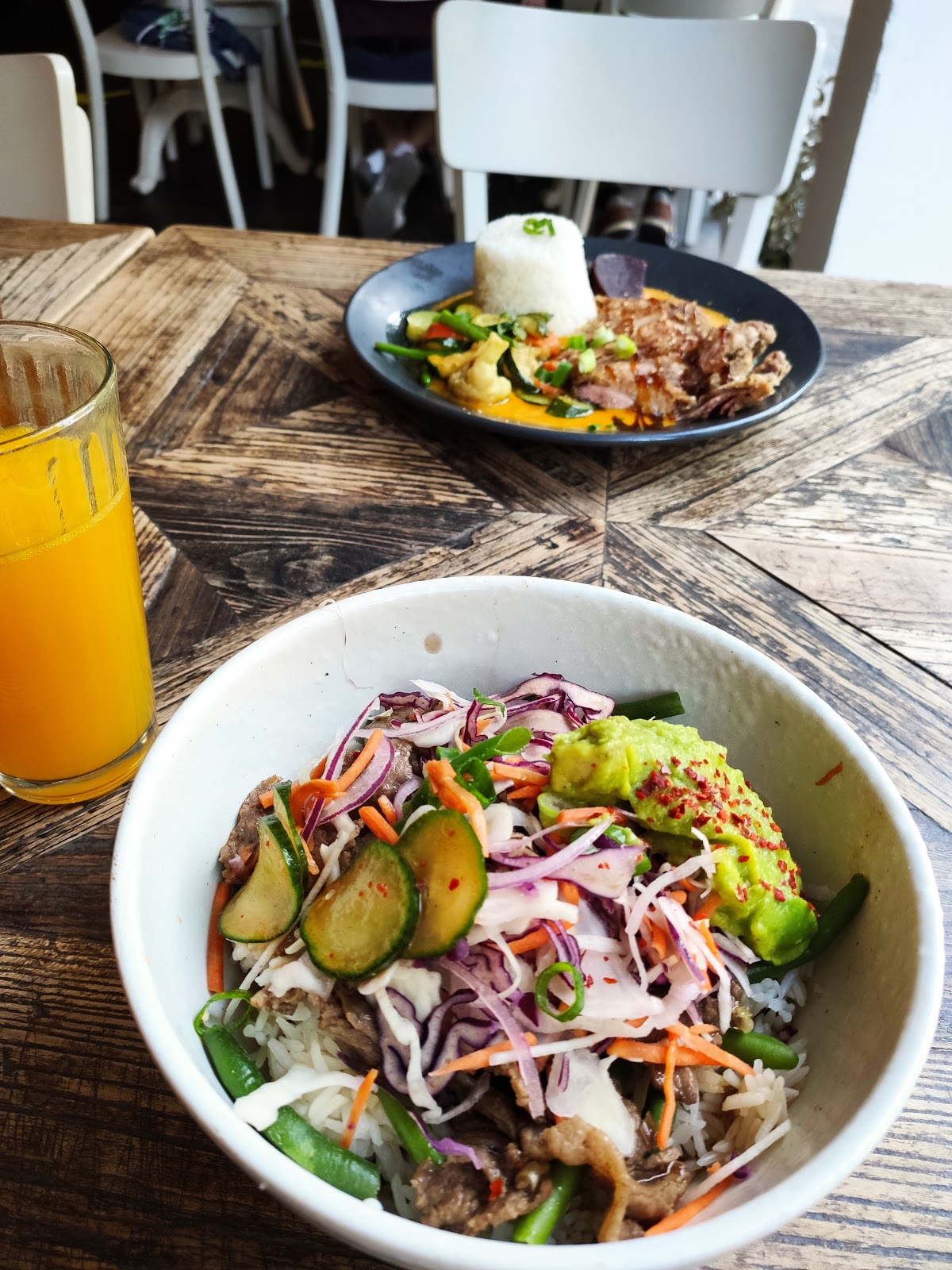 I had the pho and it was great. Meat was a little too thick for pho but its alright. My friend got the tofu ricebowl and the portion was crazy small compared to the bowl it was served in. Compared to my portion too. The 2€ apfelschorle for the mittagsmenu is very watered down and slightly cloudy.