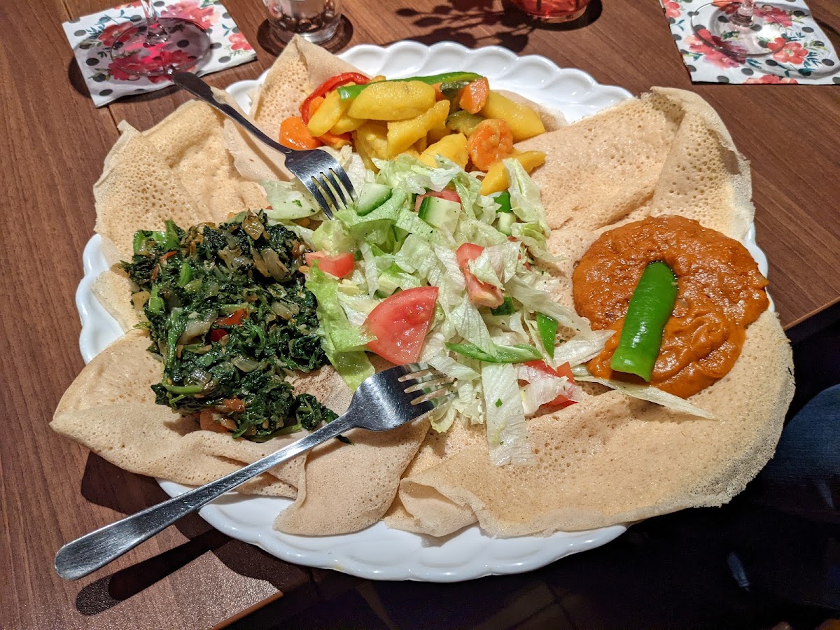 Nice small restaurant with great food. Plenty of vegetarian options. The place was clean and had good decor. While the ambiance was nice, the music was a bit too loud, the place was slightly crowded and the service was a bit slow, but the food was fresh and delicious.