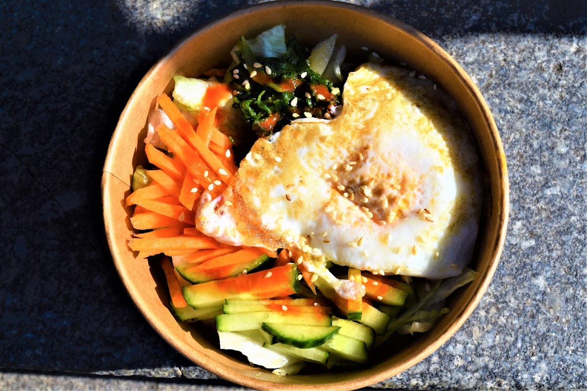 According to the photo menu posted they offer: Nürnberger Cup Bap (three pieces of Nürnberger bratwürsts on a bed of steamed white rice with kimchi). Cup Baps starts from 5€. Most of them are 7,80 € as it was with our Bibimbap Cup. You can also get some kimchi for additional 1€ with your cup or 3€ for cupful.