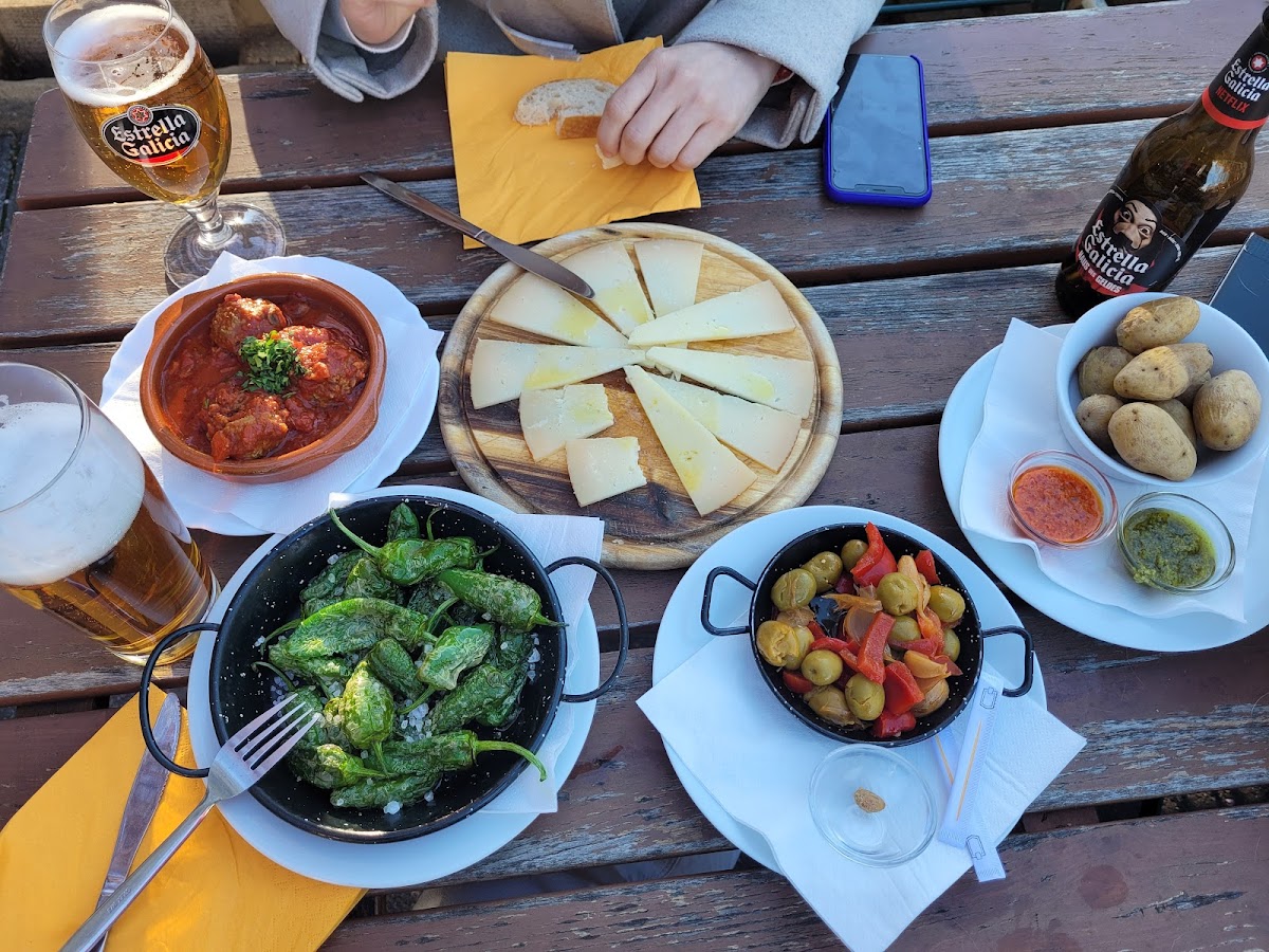 Very good tapas (but I am not Spanish). Maybe too small and a bit too expensive. Waitress friendly, atmosphere relaxed, nice area outside where you can eat and talk without problems. Right in the centre but not a typical and crowded touristic place. To be tested again maybe eating something more "complete" than super small tapas.