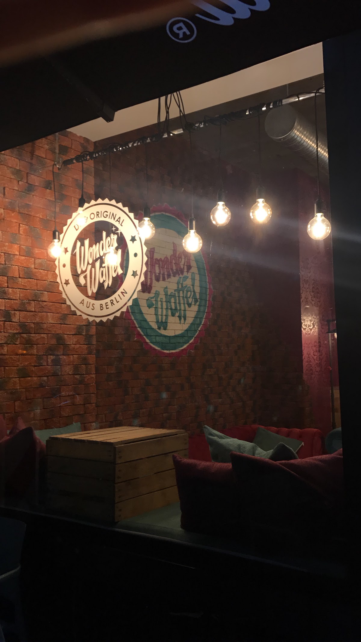 Sehr nette Mitarbeiter und die Waffeln waren sehr lecker , so wie du sie haben möchtest so werden sie dir gemacht , mit einer Schokoladenschrift auf dem Teller von deinem Namen , fand ich sehr süß ????