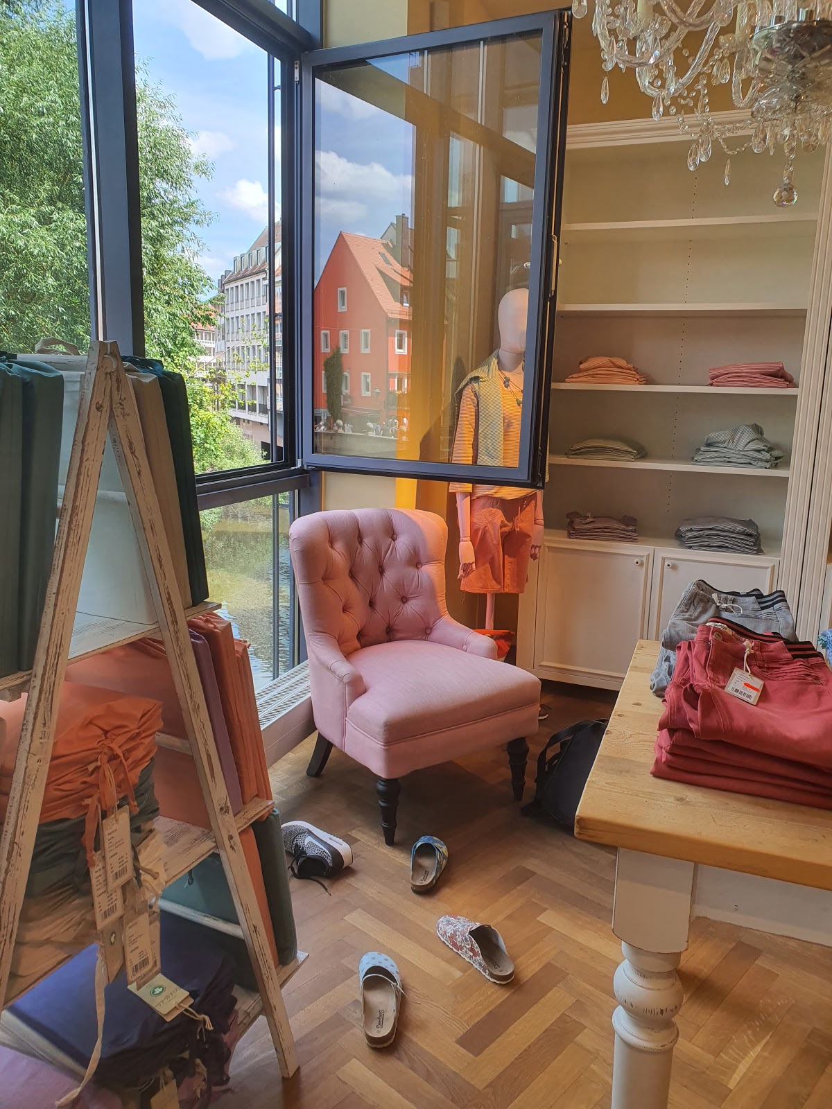 Mal andere Klamotten. Viel Strick, viel bunt, tolle Schuhe. Leider schließt der Laden in Nbg zum 8.1.22.