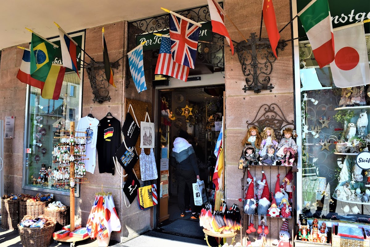 A little souvenir shop (their main store) is what I describe this one, and it's quite typical of German souvenir shops catering to (international) tourists, I'd say. However, this store is filled to the brim with what you can normally expect from any German souvenir stores and with some local specialties (I don't recommend to go in this shop with large backpack--you'll find it very difficult to maneuver around with it). I noticed suggested one-way arrows on the floor--I think most folks observed it. They sell: biersteins and krüge, cuckoo clocks (not great selections--you really need to go to the Black Forest region for real good ones IMHO), nutcrackers, rauchmann, Christmas ornaments, pewter (painted [and unpainted] Franconian zins) and crafted items, pottery of all kinds and souvenirs. Here's the interesting and proud store history from their website: