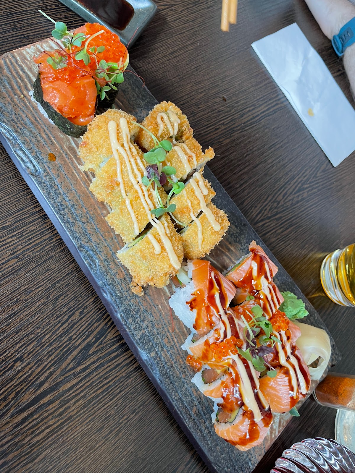 The ambience is great, cozy and cute. The food is extremely delicious. Sesame chicken, sushi, Pho bo and OMG their panna cotta is to die for????