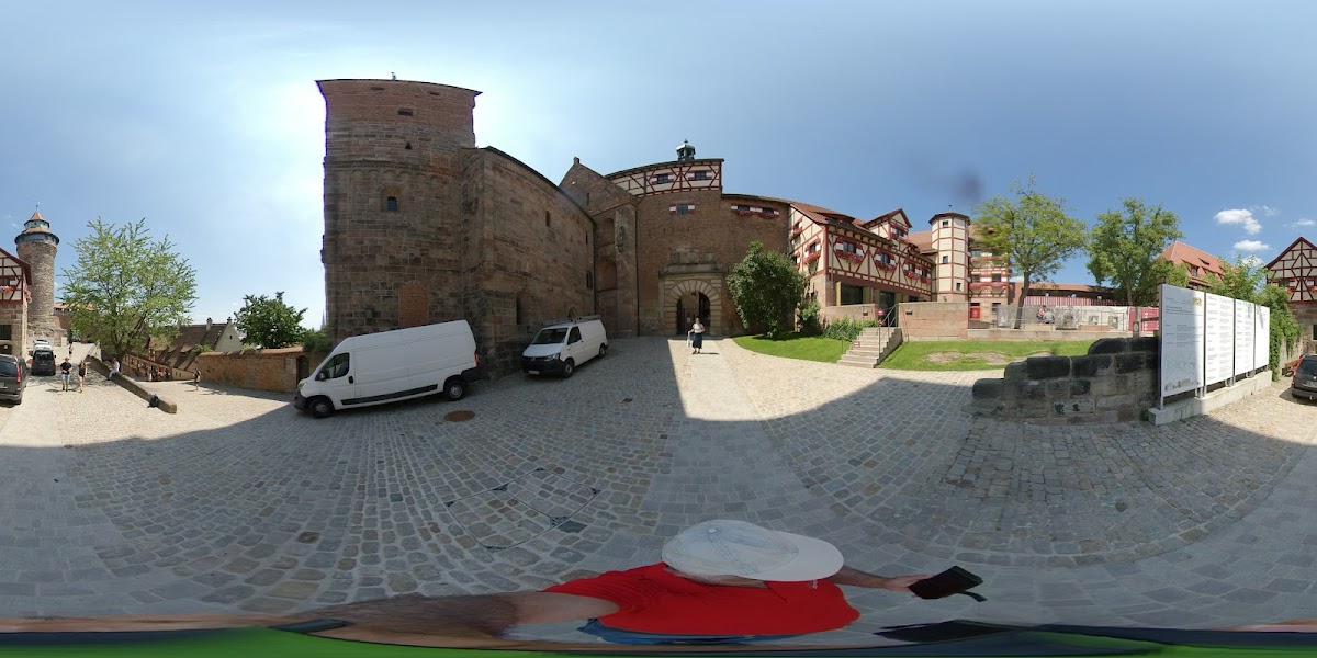 Se vi trovate a Norimberga non potete perdere la visita al castello imperiale, perciò armatevi di coraggio e cominciate a salire in alto, per raggiungerlo. Al primo traguardo potete già ammirare un favoloso panorama dei tetti della città, ma se siete allenati potete salire più in alto, sulla torre fare un bel po' di gradini e arrivare sulla torre del castello per ammirare meglio la città. In ogni balcone si vedono i tipici fiori rossi che assomigliano ai nostri gerani, e che danno una atmosfera particolare all' insieme. Ma la visita alla torre e' a pagamento