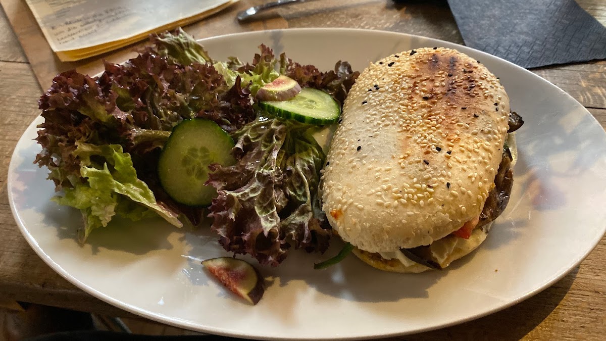 Atmosphere is awesome, music, food, coffee, what a great experience. Veggie Sandwich and Root beet créeme were delicious.