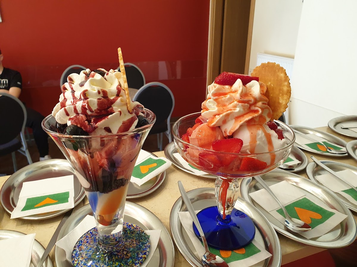 Lecker Eis, super freundliche Menschen, die mit viel Liebe ihr Eis und andere Spezialitäten verkaufen! Man sitzt zwar mit Blick auf die Katzwanger Hauptstraße, was nicht jedermanns Sache ist, aber es ist trotzdem gemütlich! Und für ein Eis ???? zum Mitnehmen ist es sowieso eine super Wahl!
